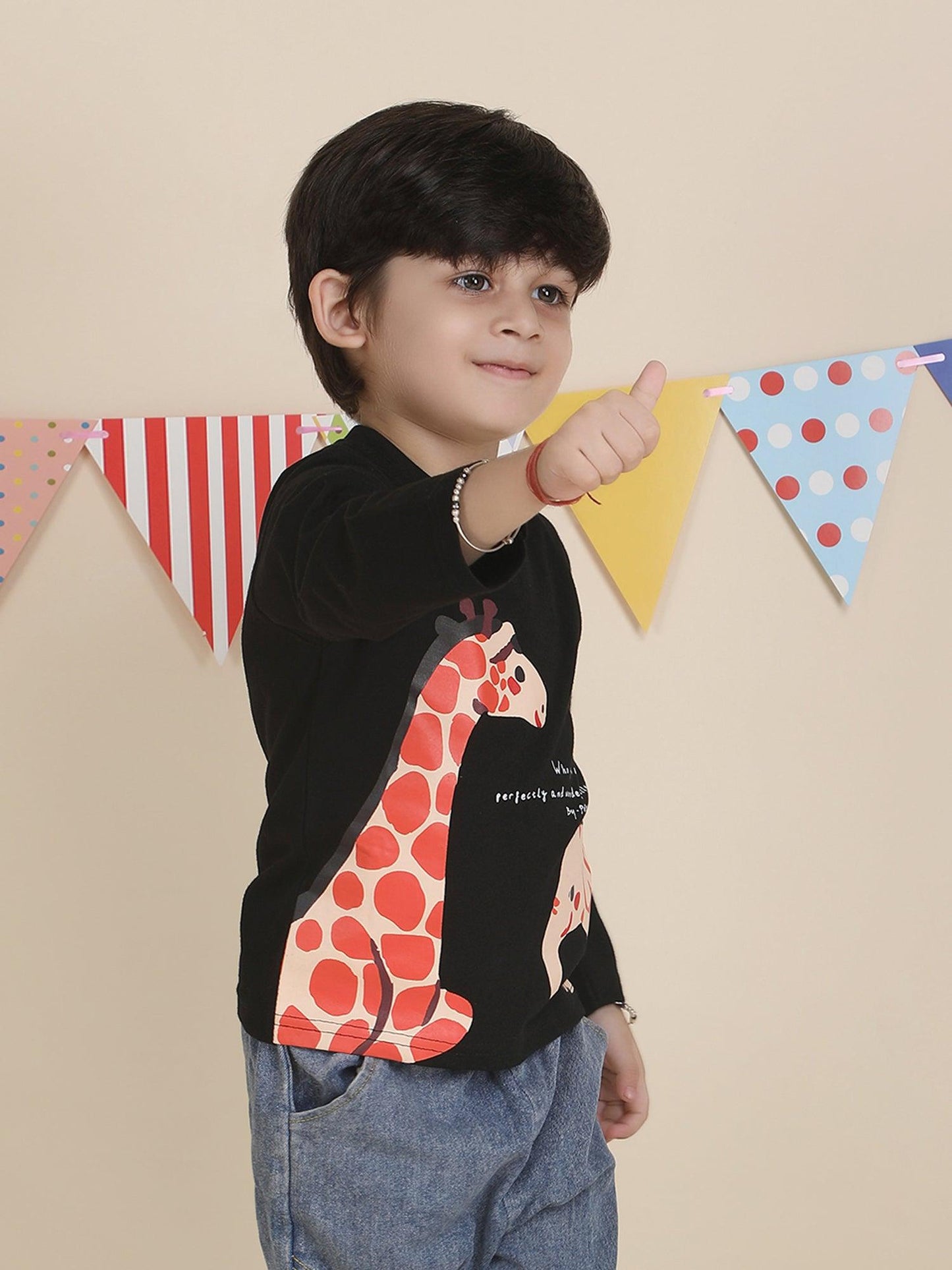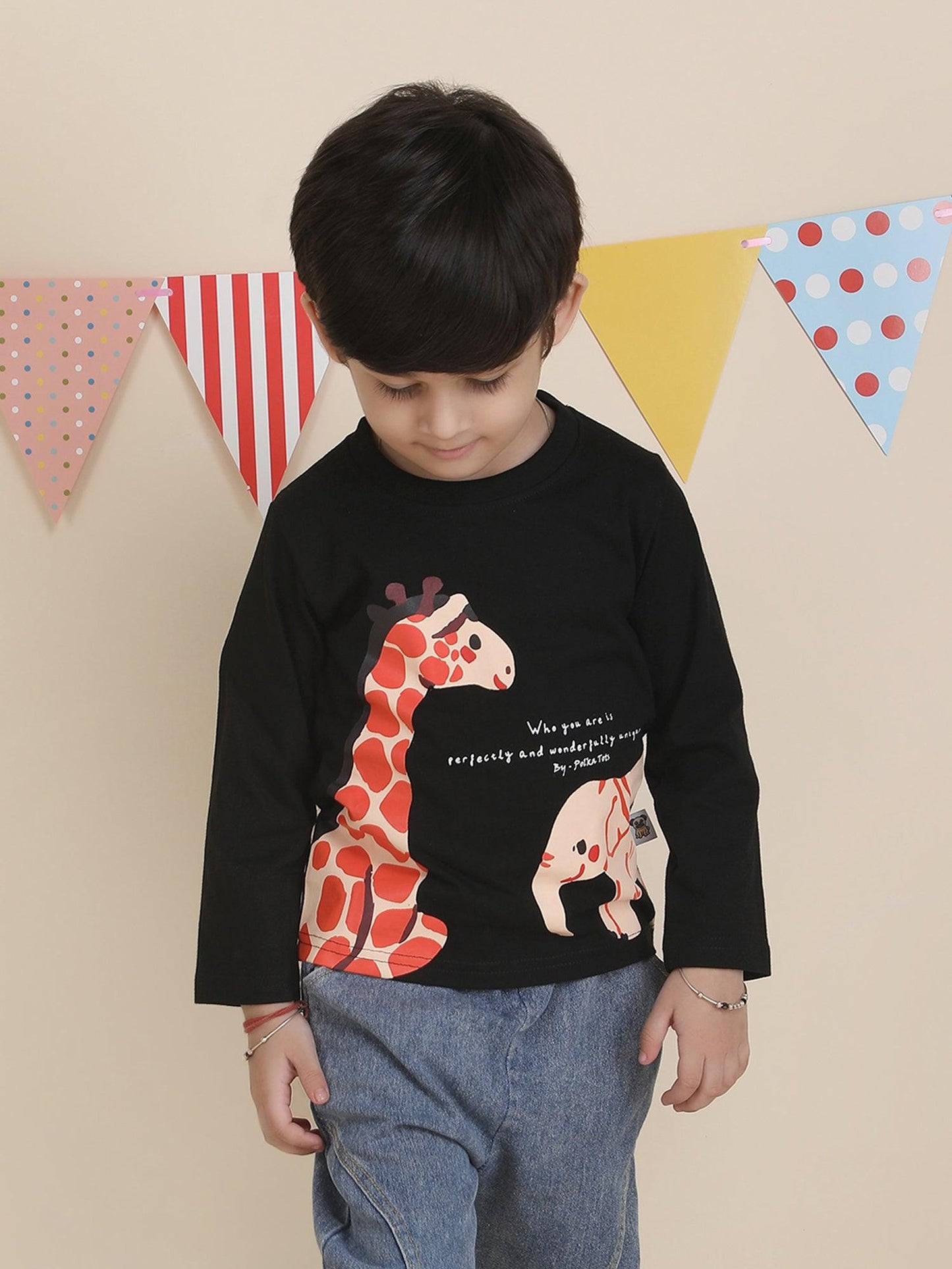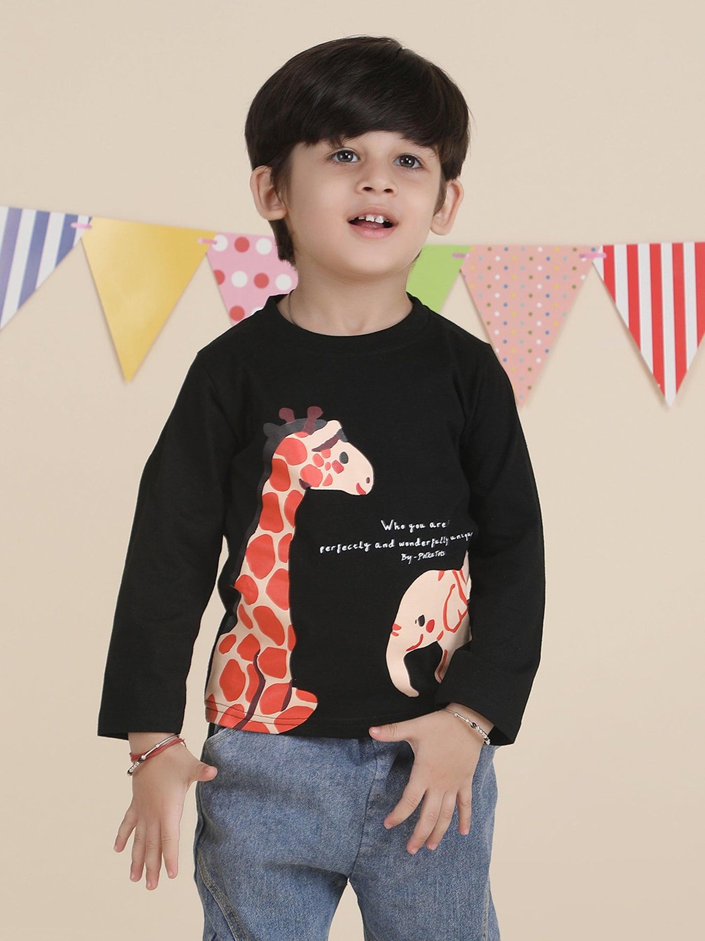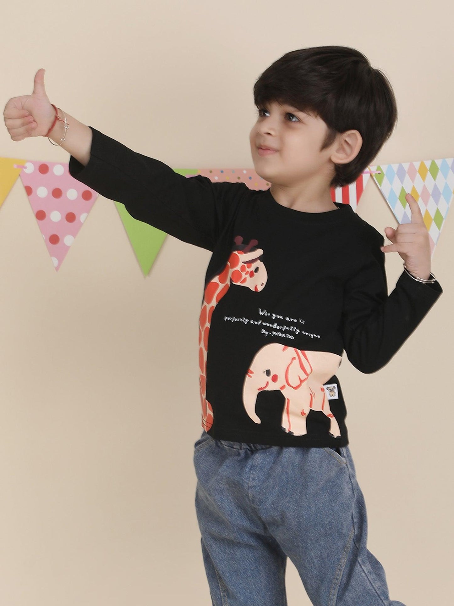 Polka Tots Full Sleeves Animal print T-shirt - Black