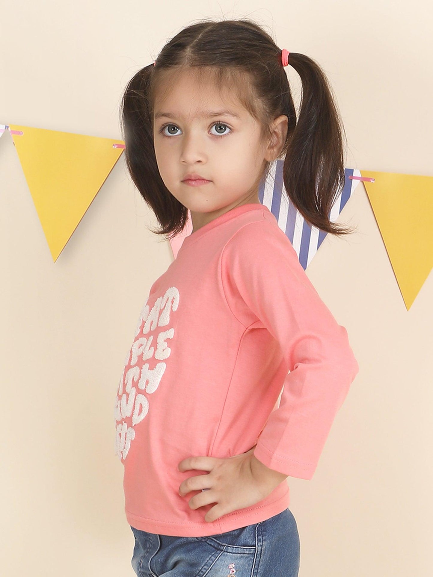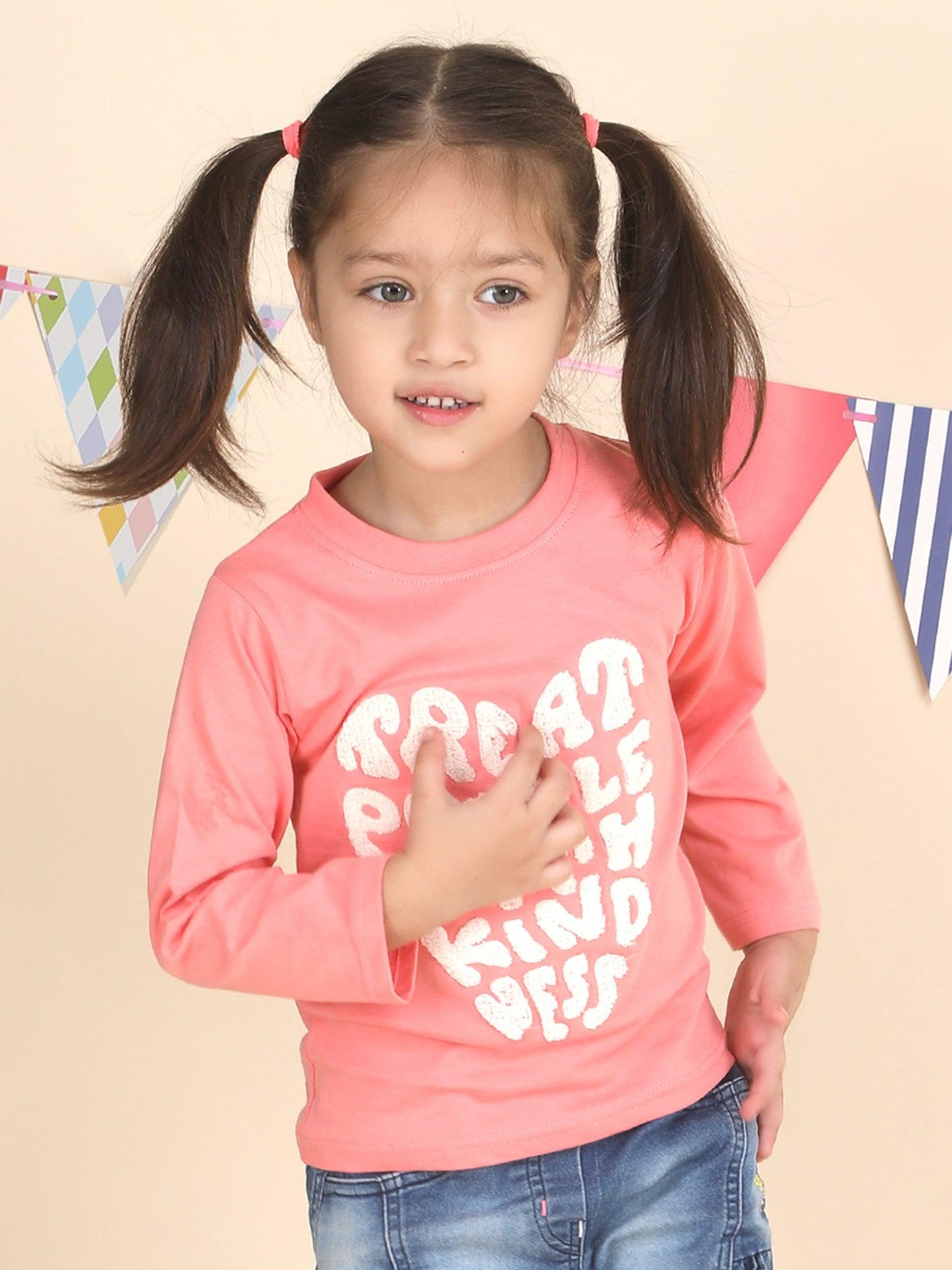 Polka Tots Full Sleeves Treat People with Kindness print T-shirt - Pink