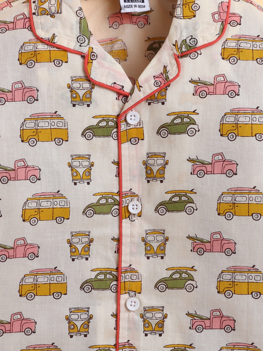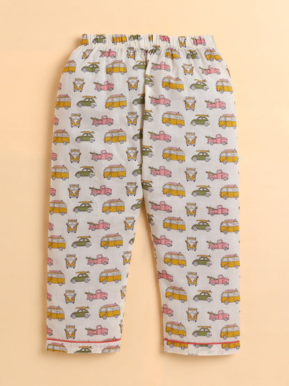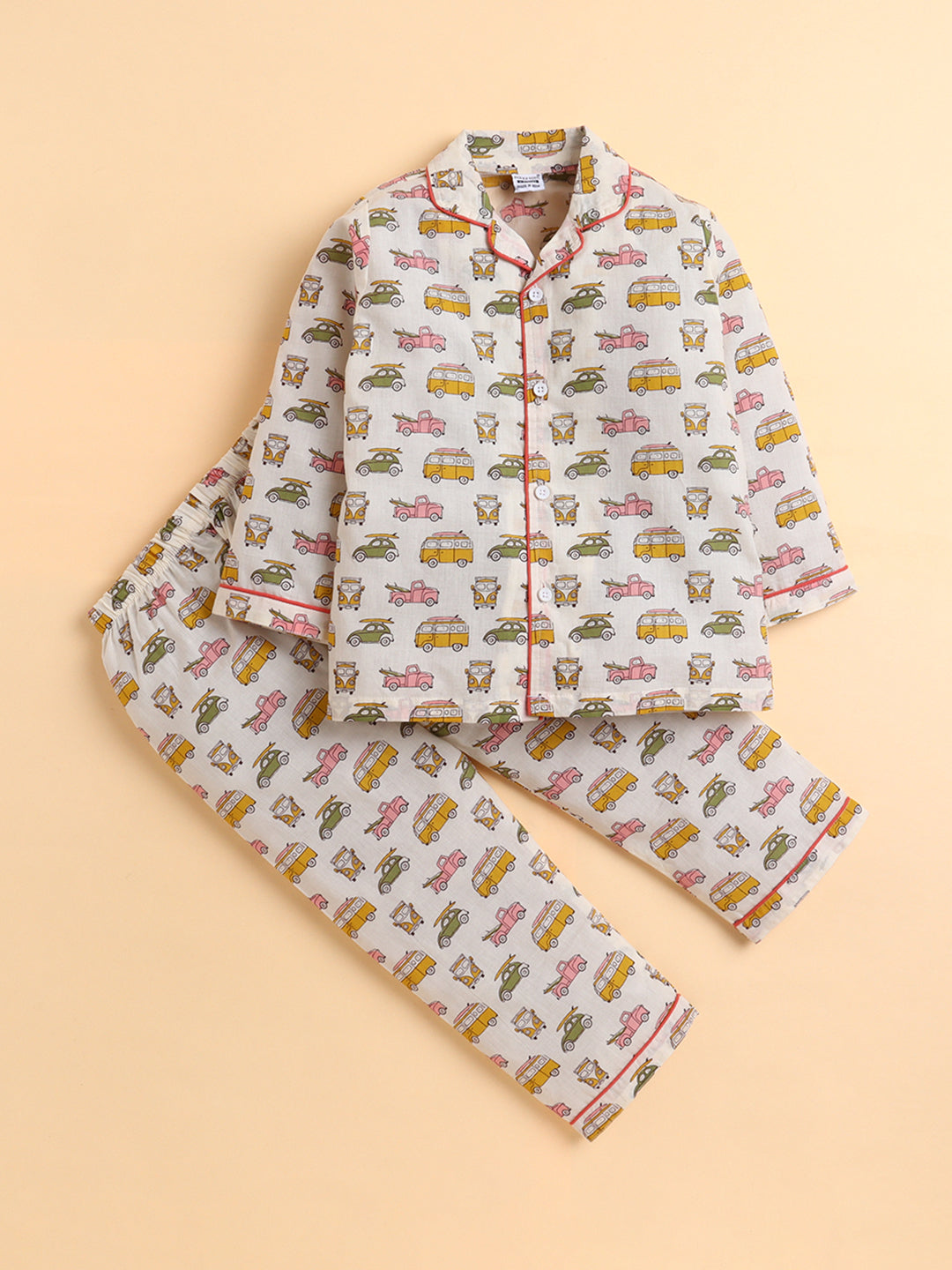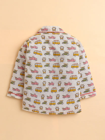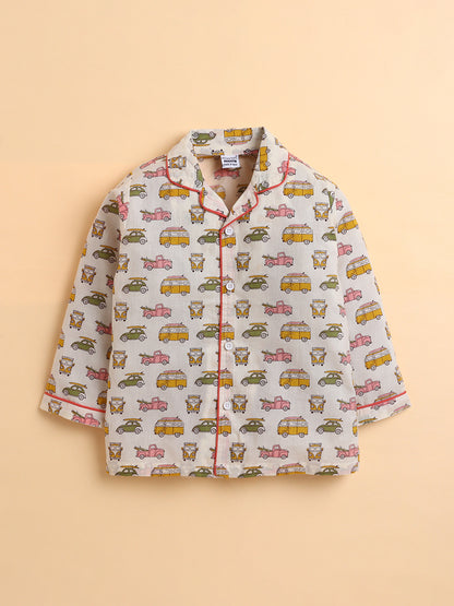 Polka Tots Full sleeve Vehicle Print Night suit - Multicolor