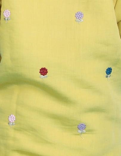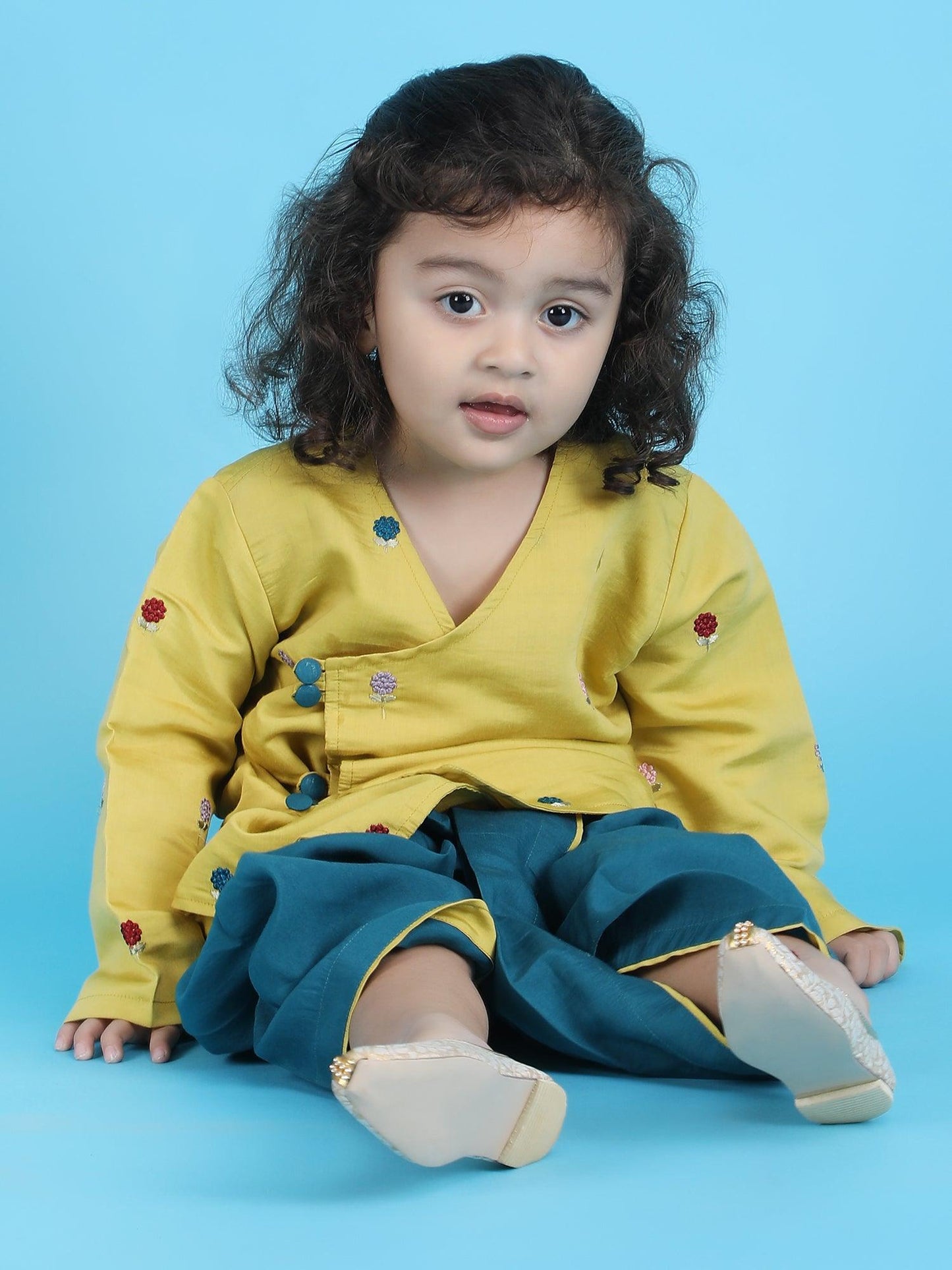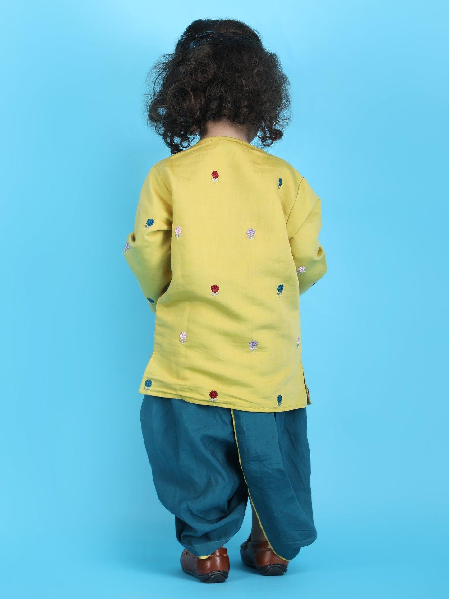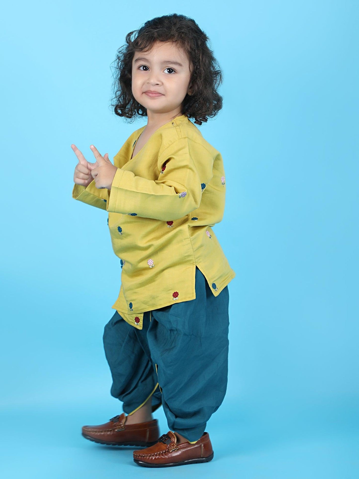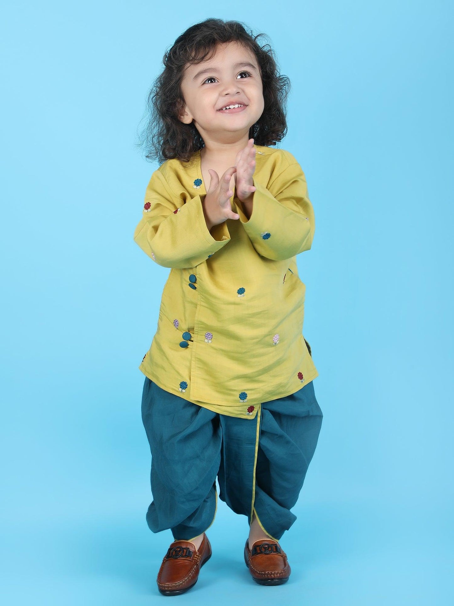 Polka Tots Full sleeves Flower Embroidery Angrakha With Dhoti Set - Green