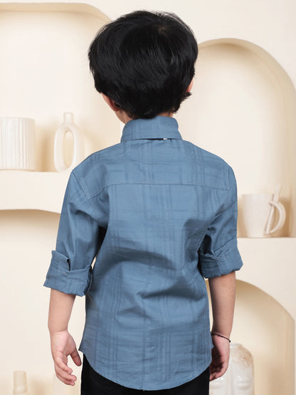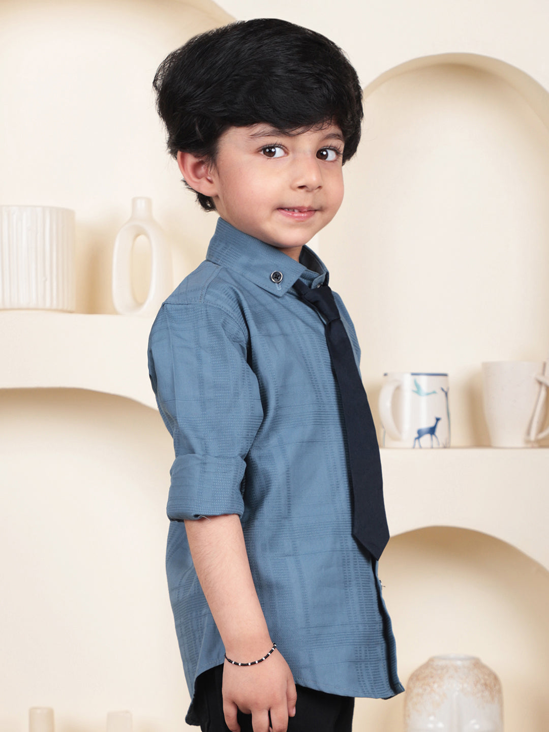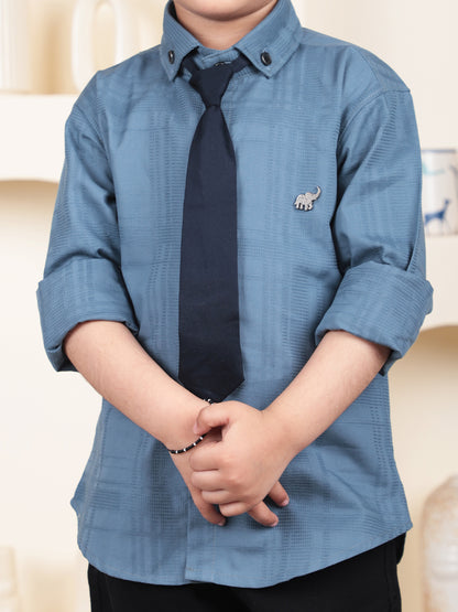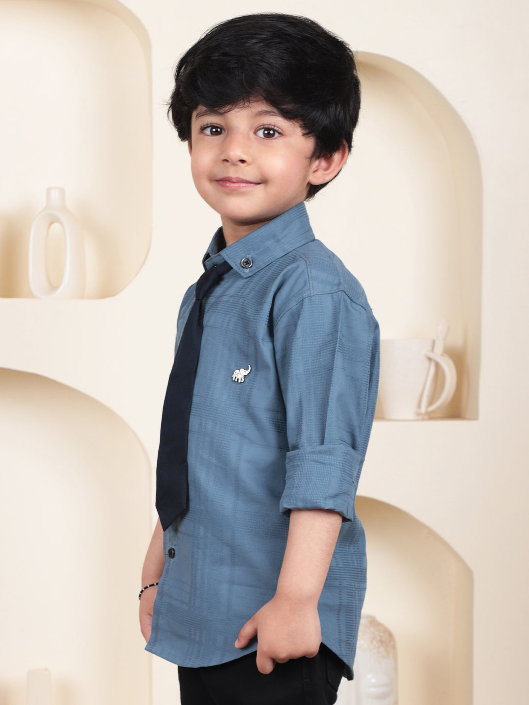 Polka Tots Full Sleeves Cotton self textured Shirt with Tie - Grey