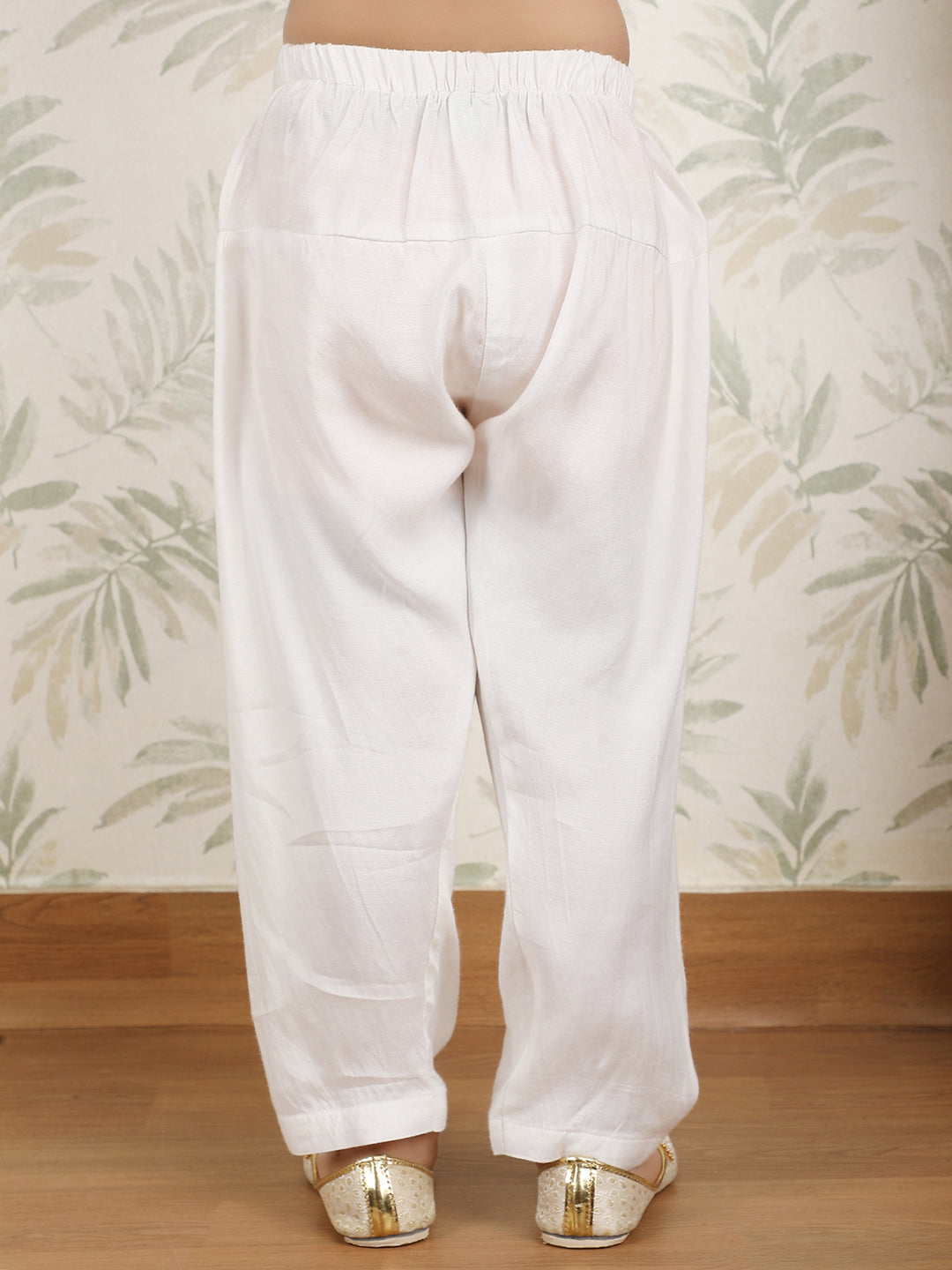 Polka Tots Full Sleeves Textured Pathani Kurta Set - White
