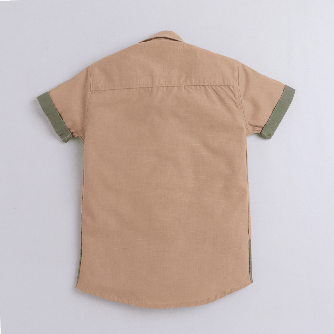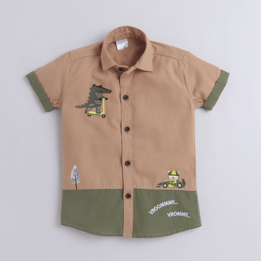 Polka Tots Dinosaur Print H/S Shirt - Brown