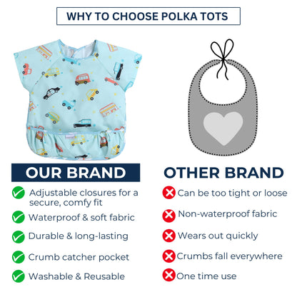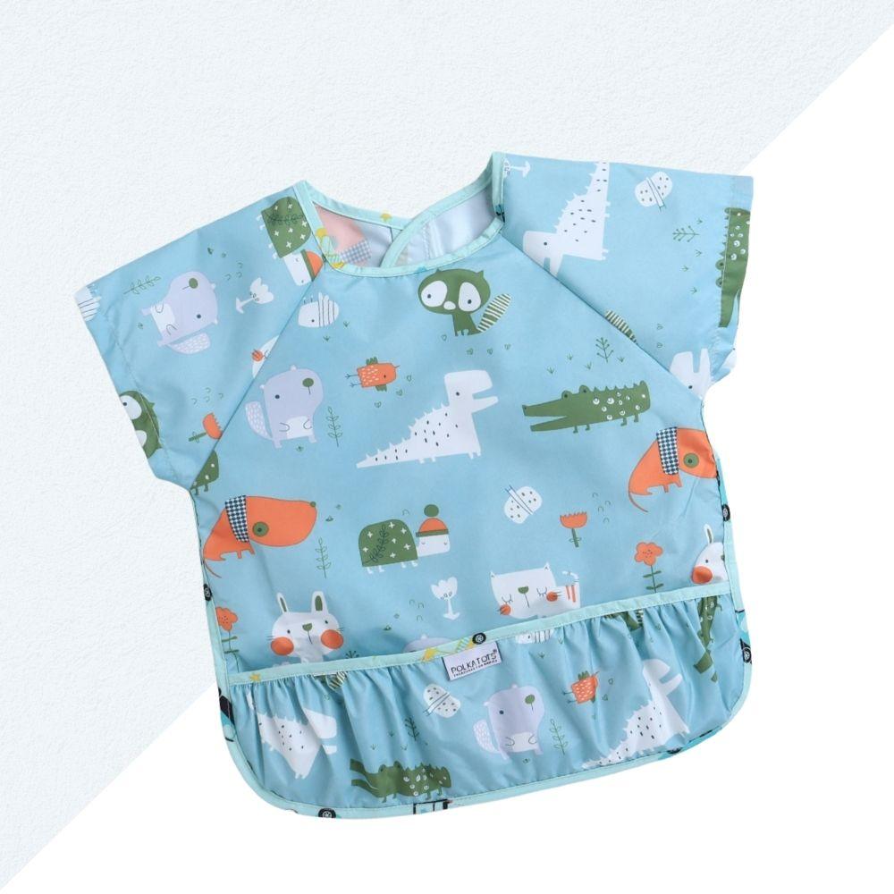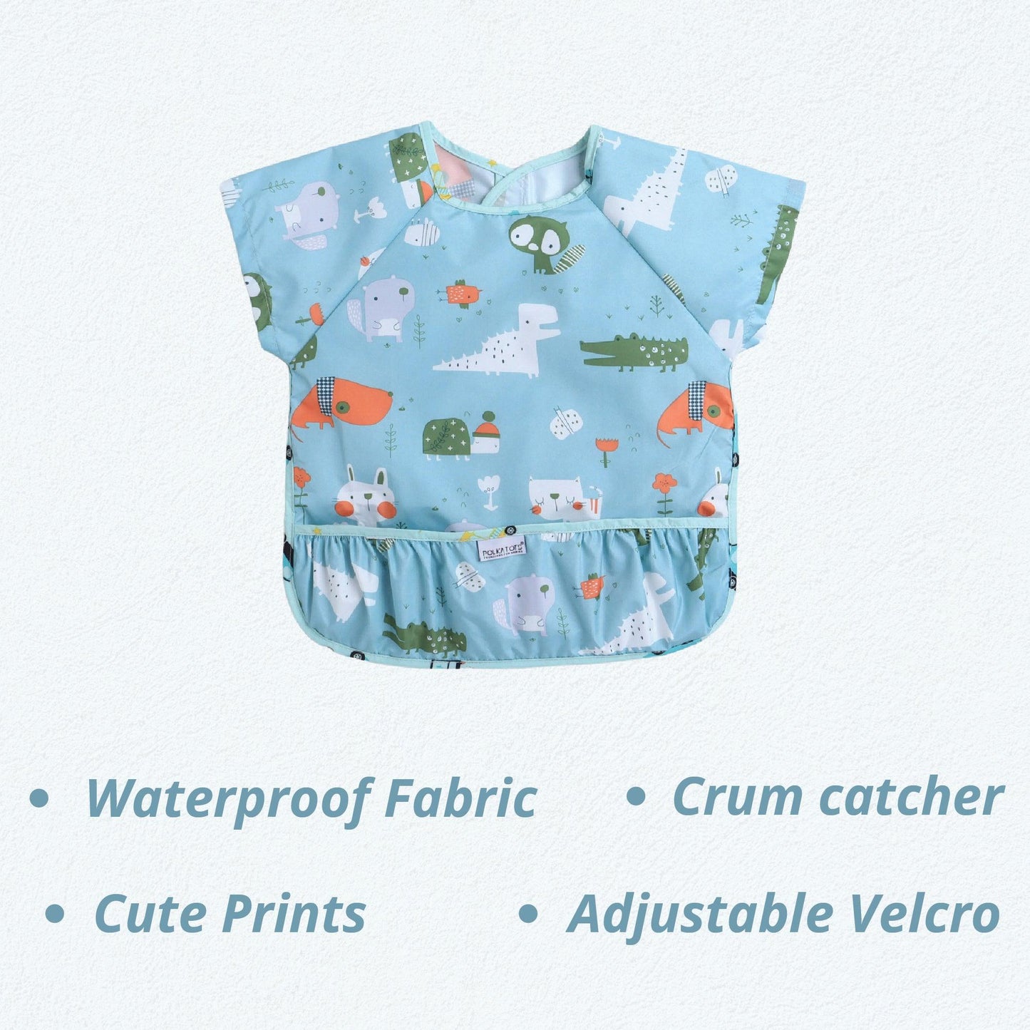 POLKA TOTS Half Sleeve Baby Bibs for Toddlers Feeding Apron with Pocket Washable/Reusable Baby Drooling Apron (6-24 Months) (Animal Design)