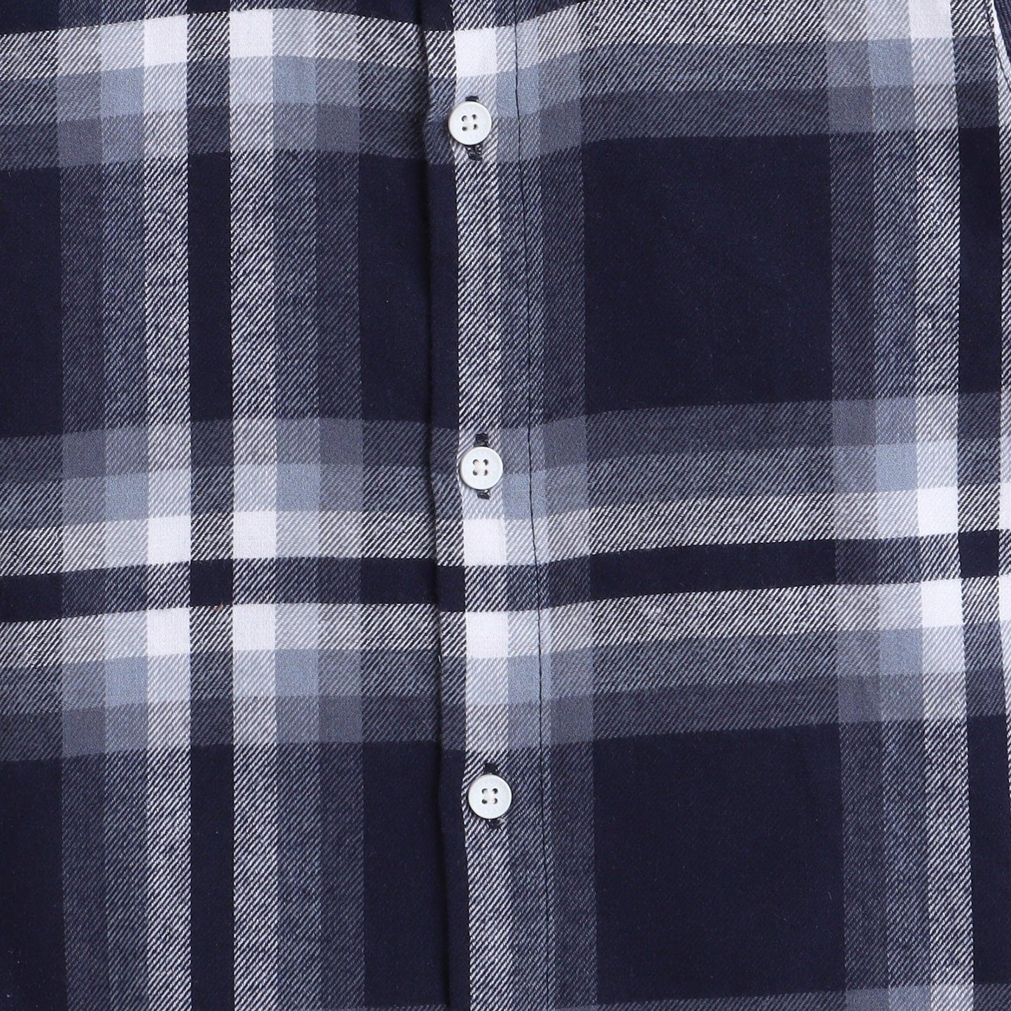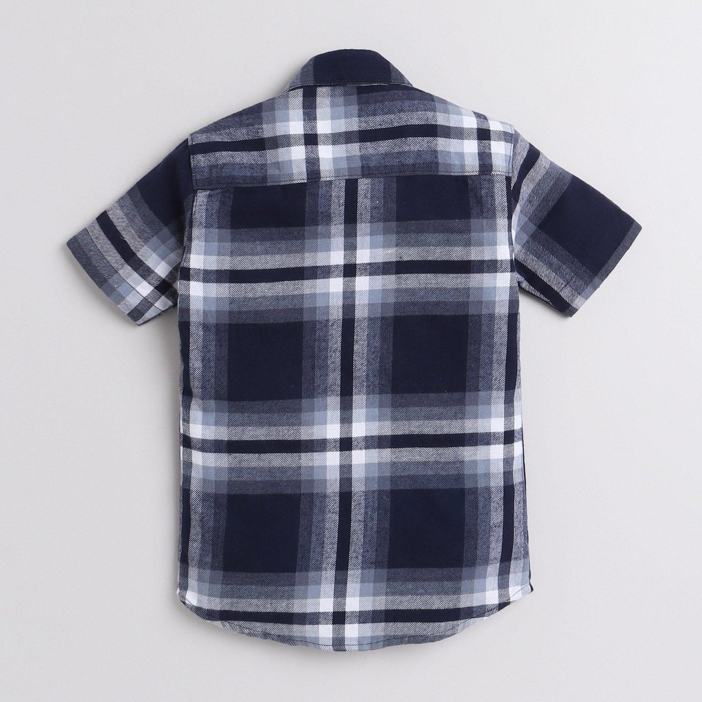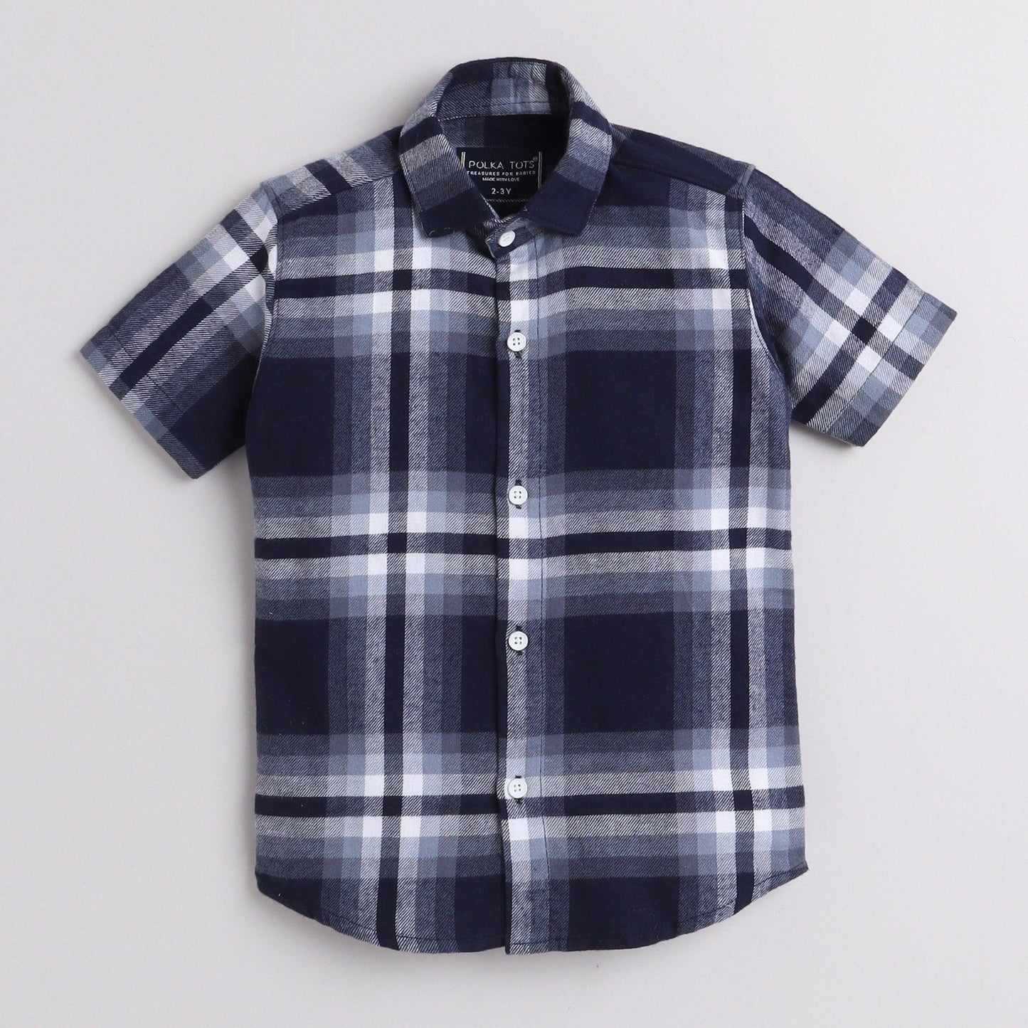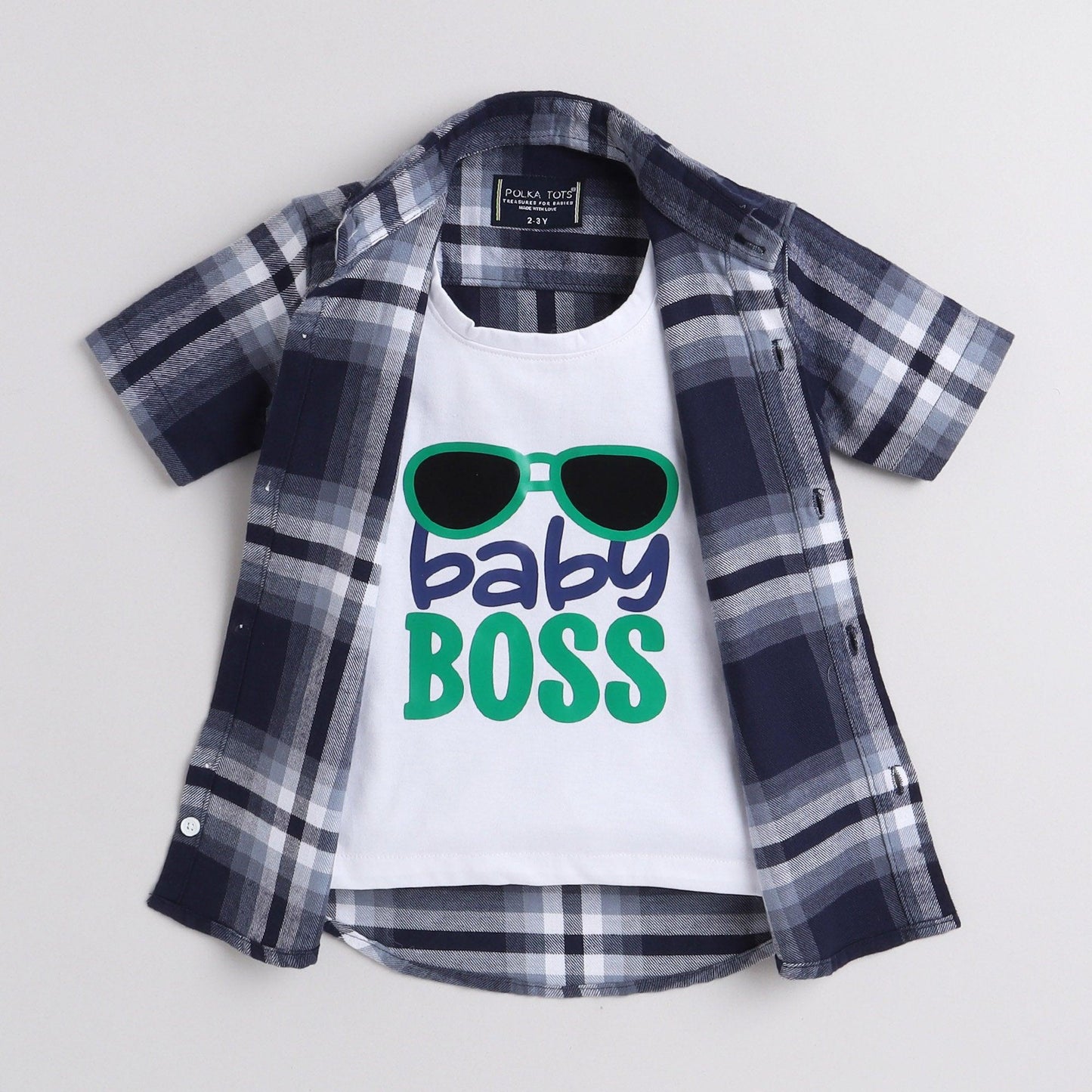 Polka Tots Half Sleeve Checks Shirt Attached T shirt Baby Boss Print - Blue