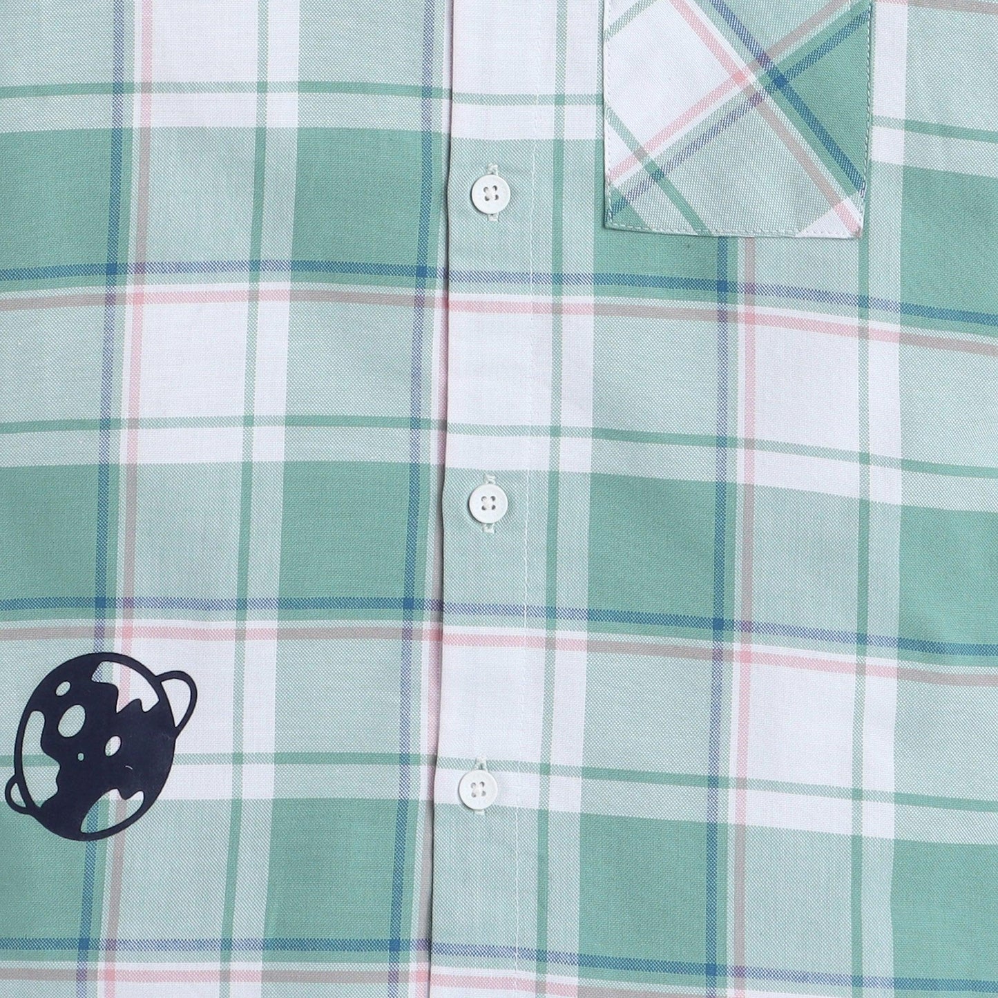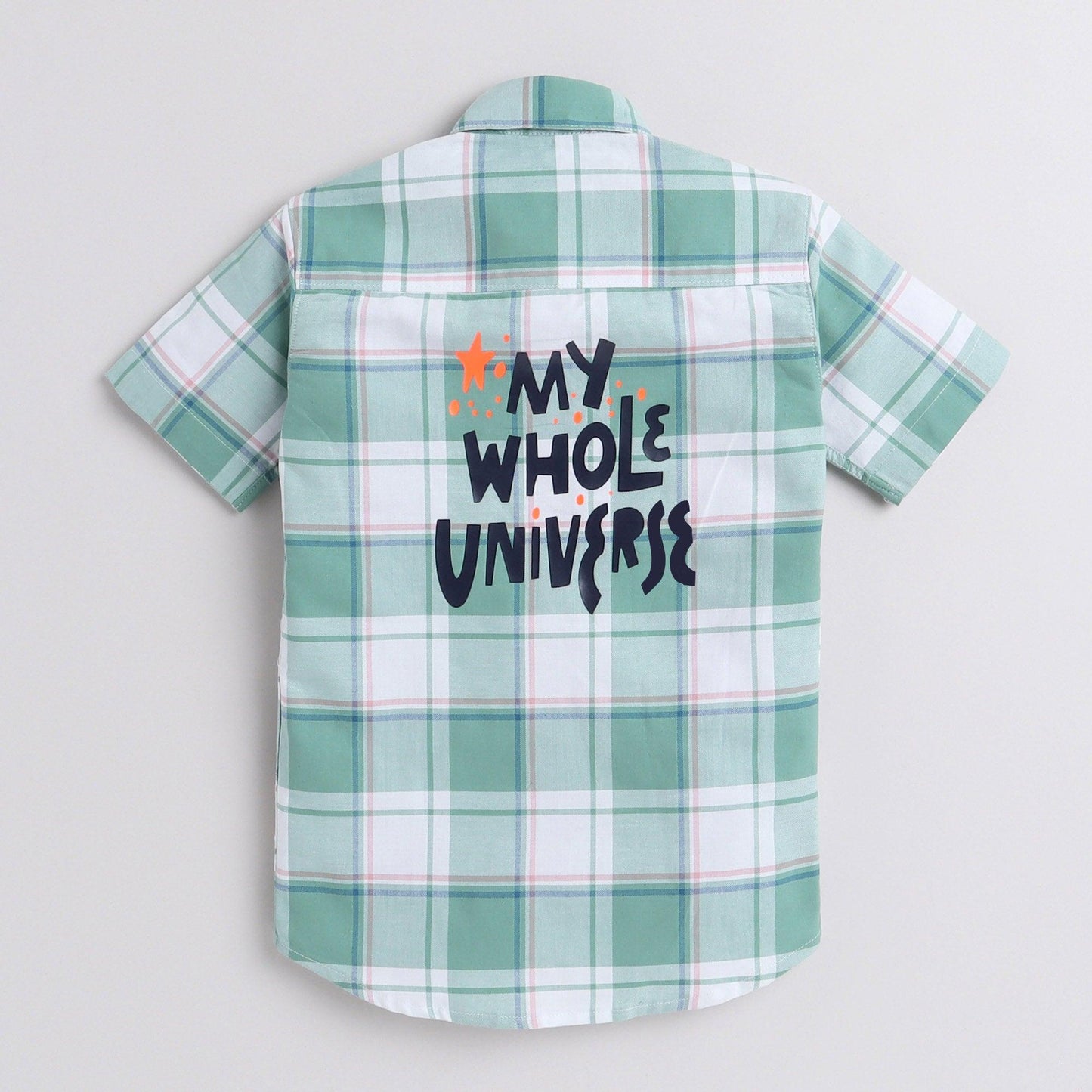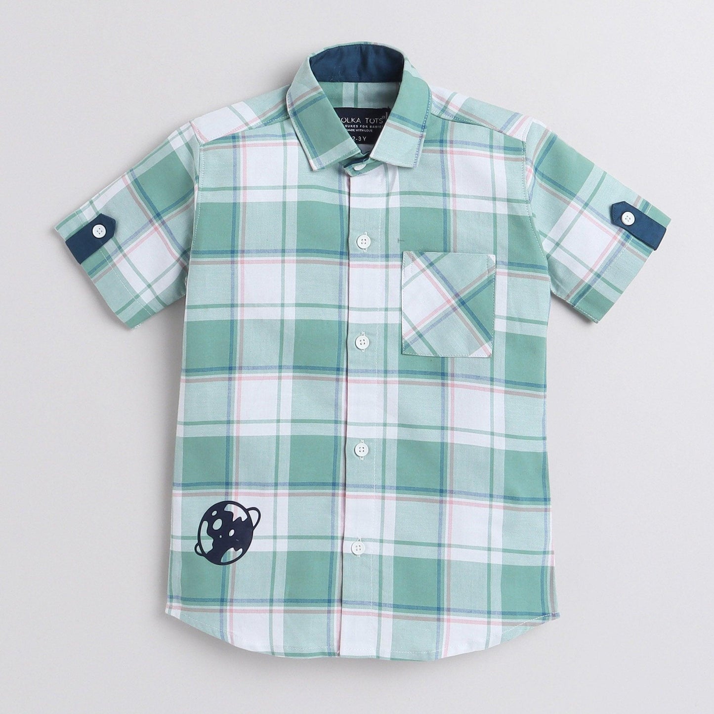 Polka Tots Half Sleeve Checks Kids Shirt Universe Print - Green