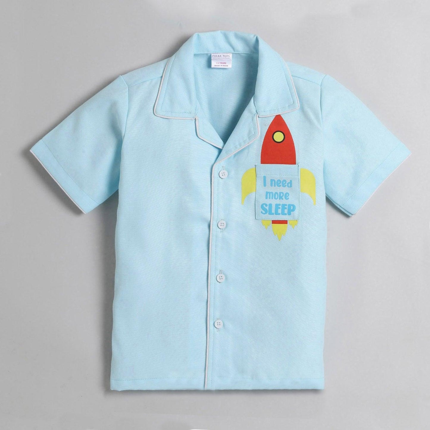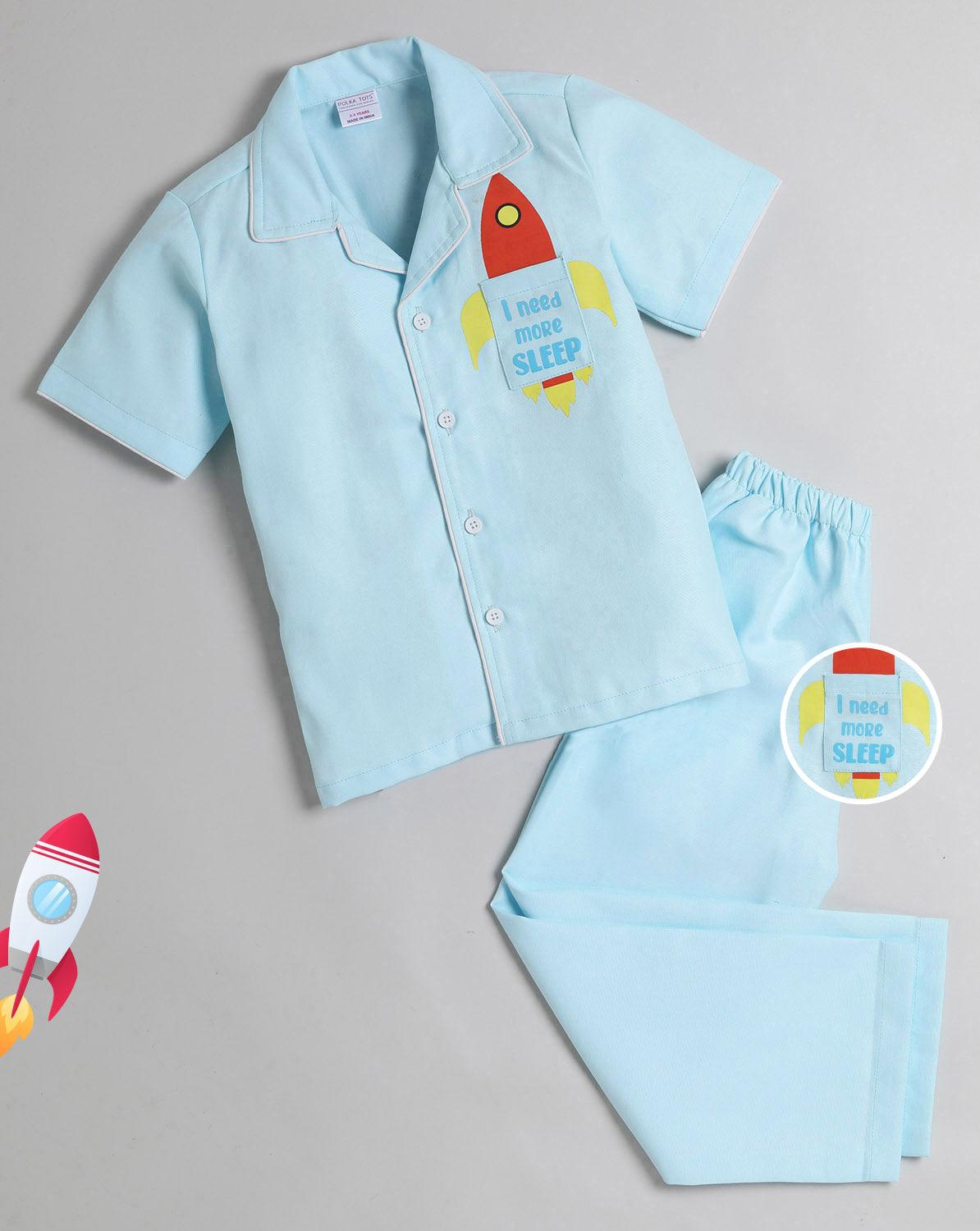 Polka Tots Half Sleeve Night Suit Pair Cotton Rocket Need More Sleep- Blue