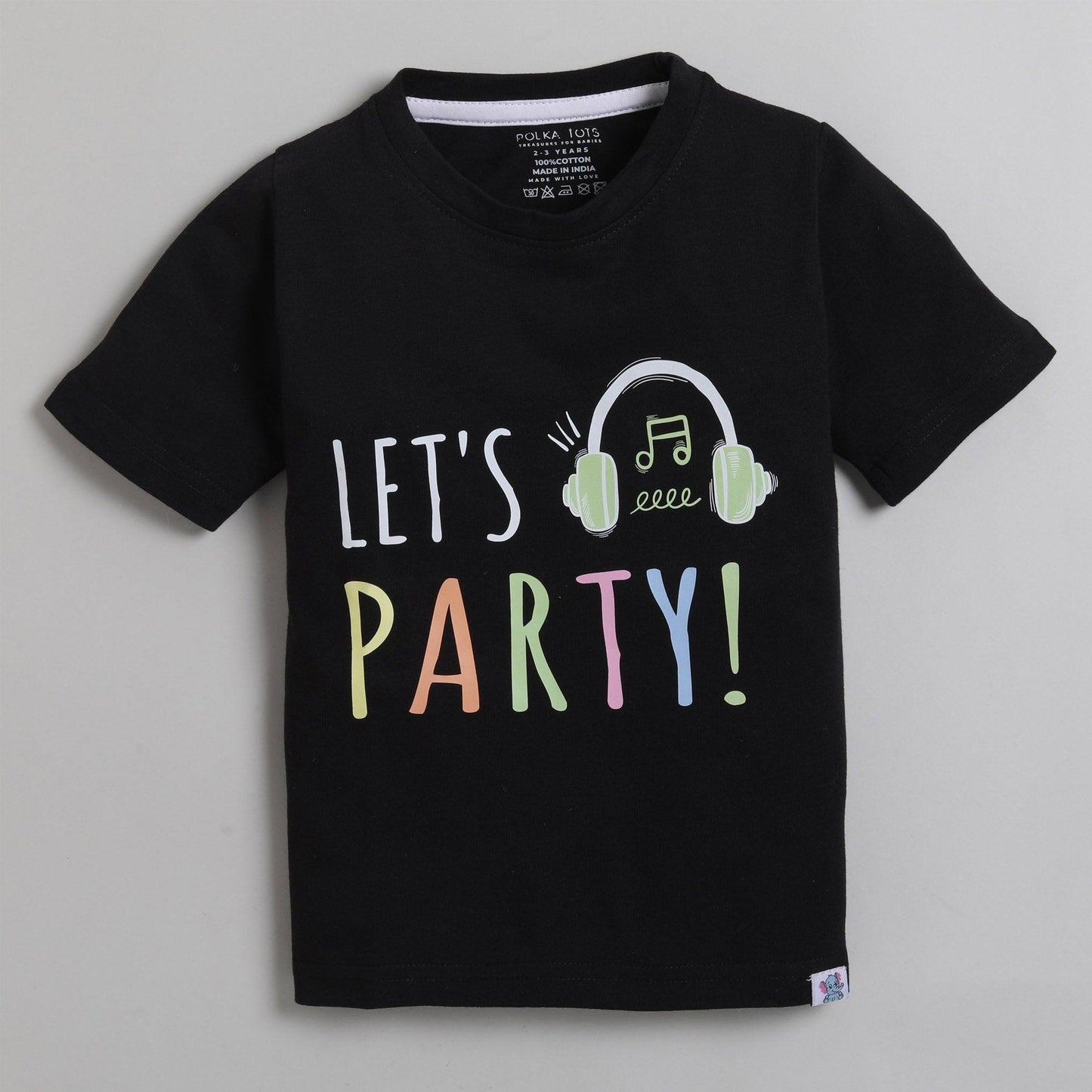 Polka Tots Half Sleeve T-Shirt Lets Party Print - Black
