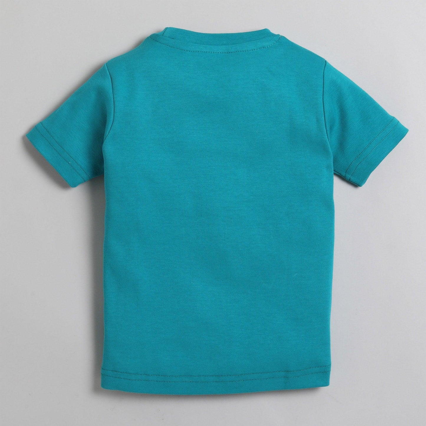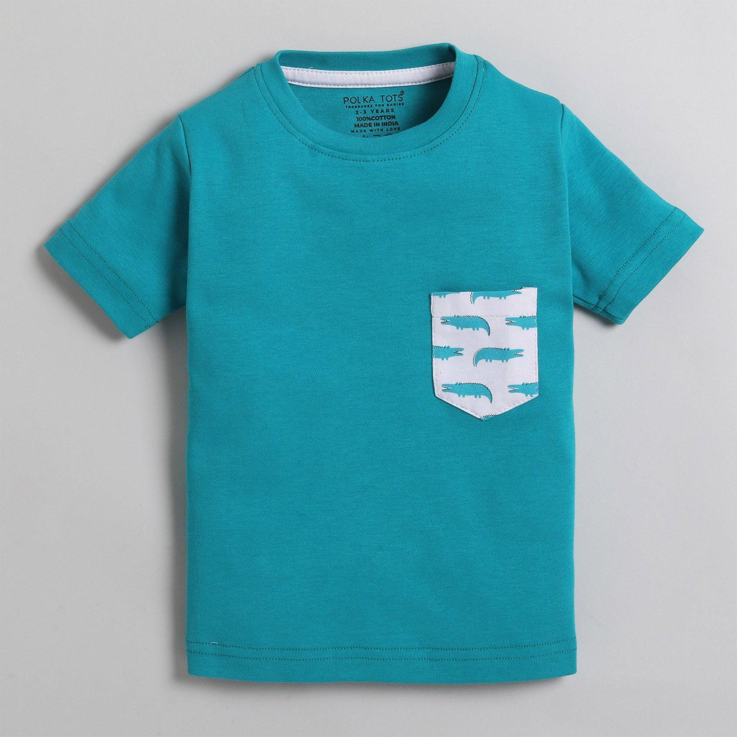 Polka Tots Half Sleeve T-Shirt With Crocodile Pocket - Blue