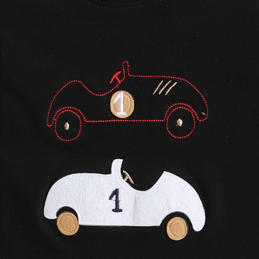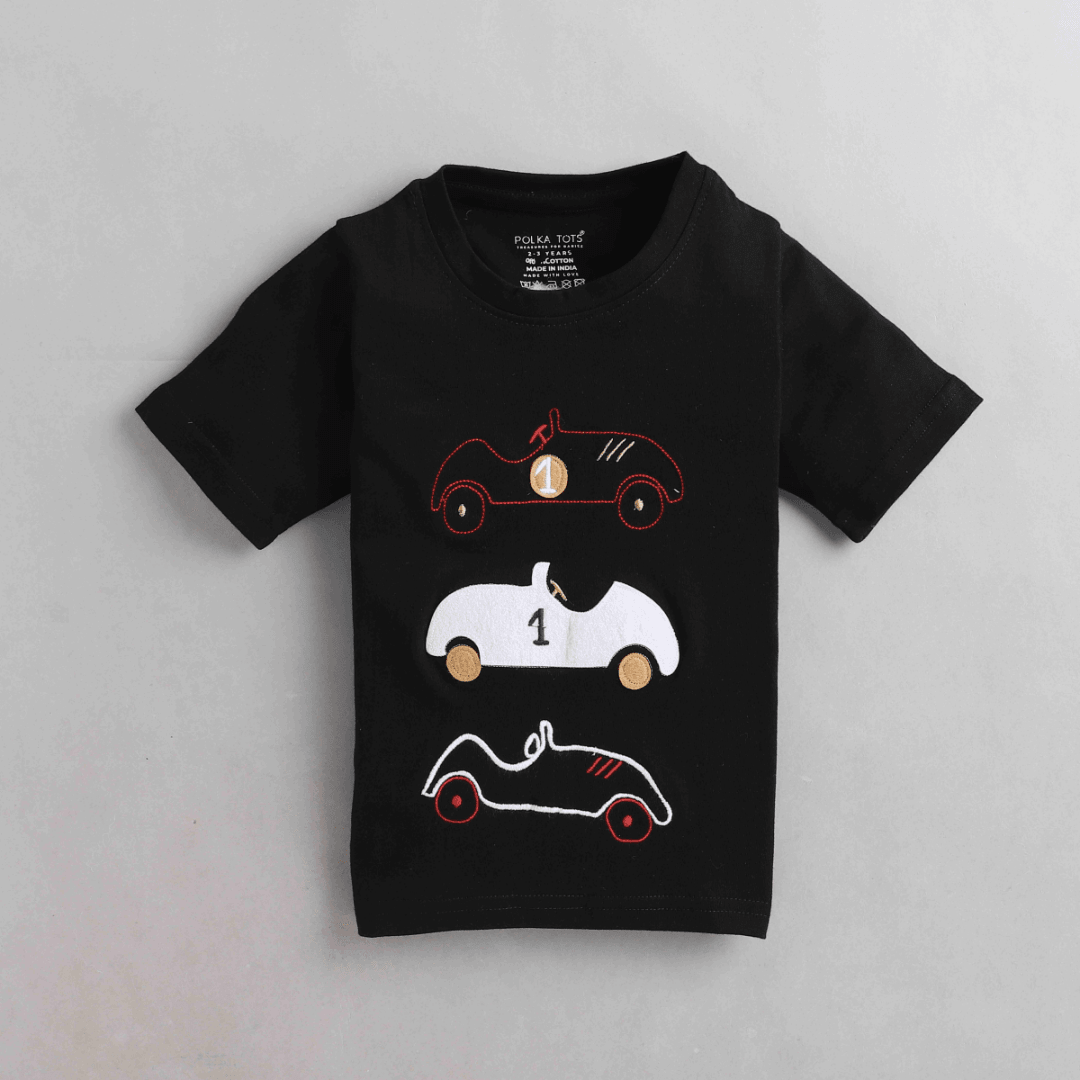 Polka Tots Half Sleeves Car Racing Patch Tshirt - Black