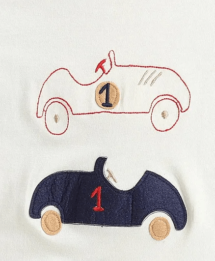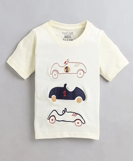Polka Tots Half Sleeves Car Racing Print Tshirt - White