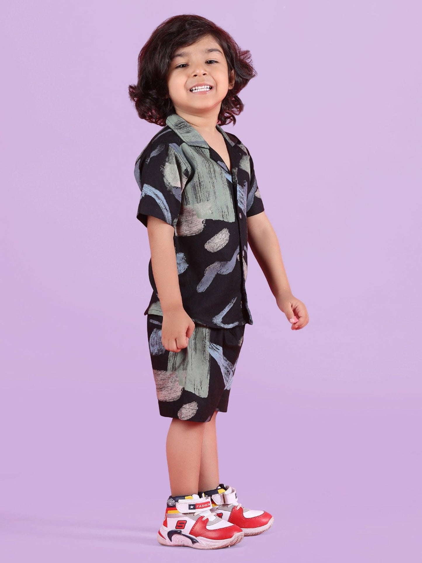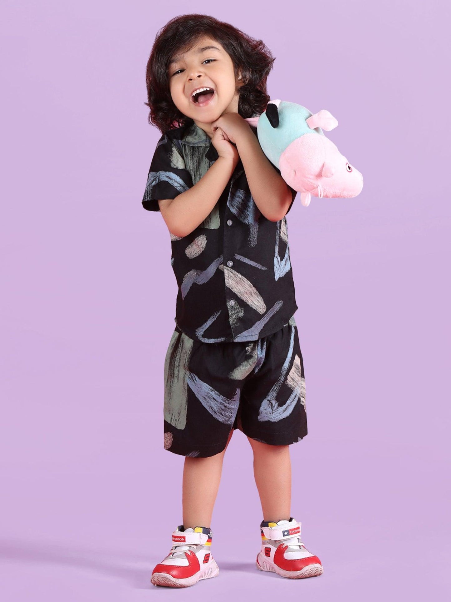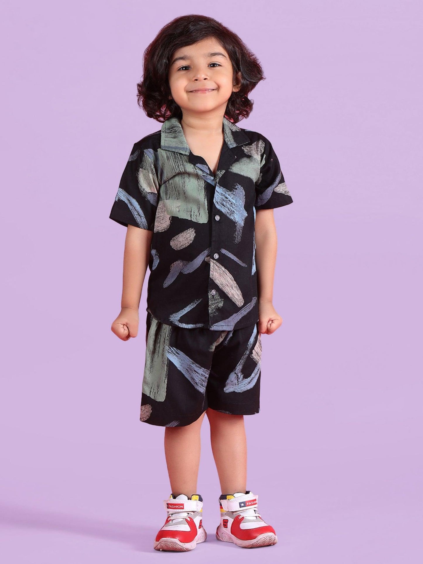Polka Tots Half Sleeves Co-ord Shorts - Black