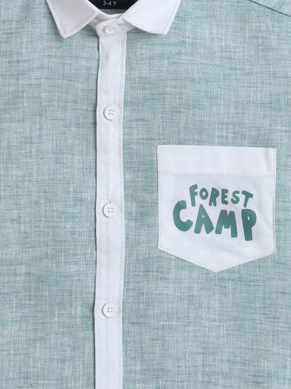 Polka Tots Half Sleeves Forest camp print Shirt - Green