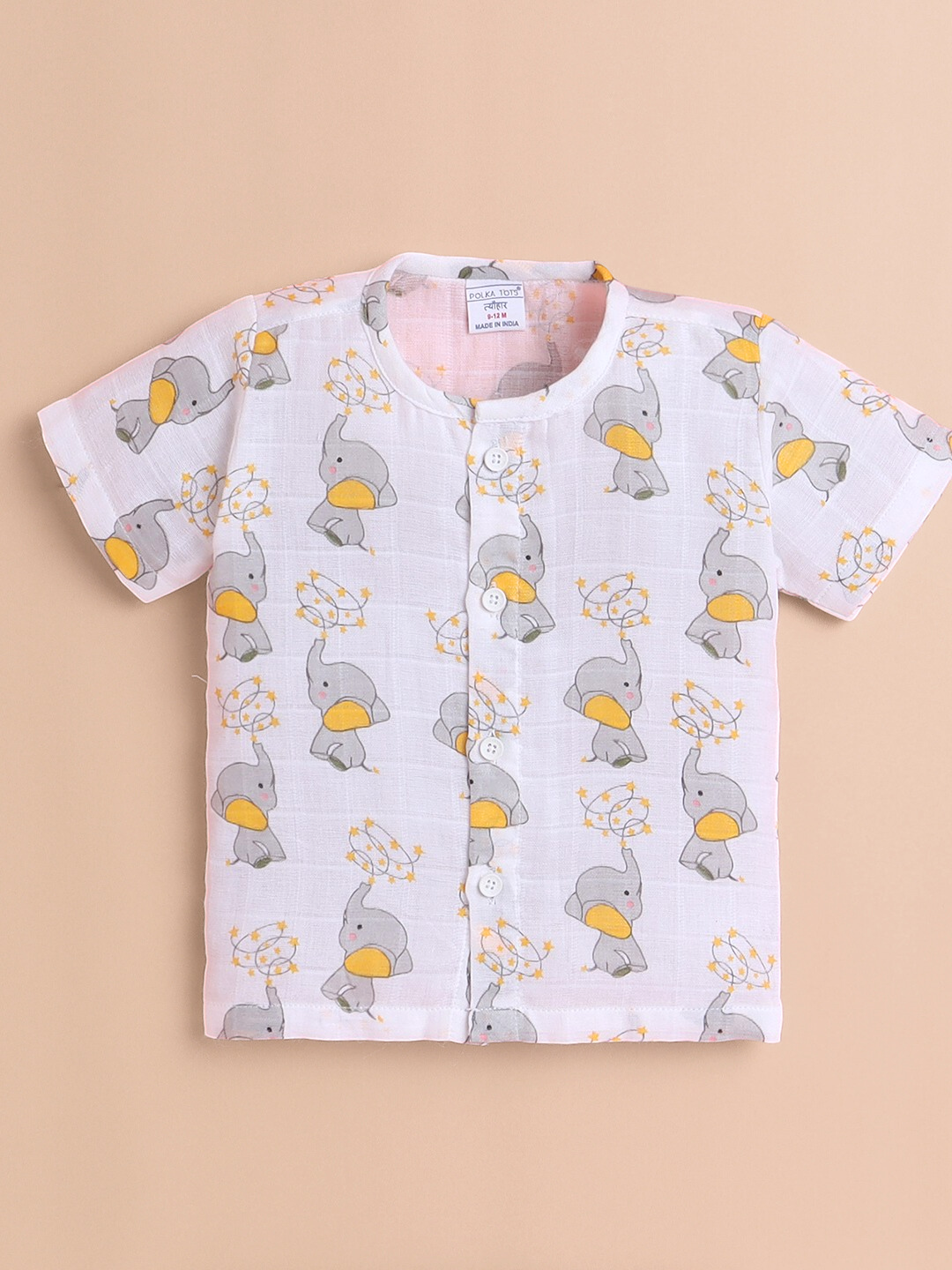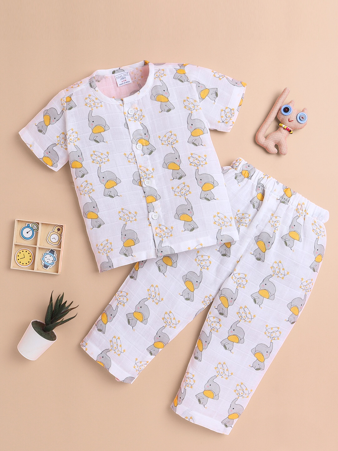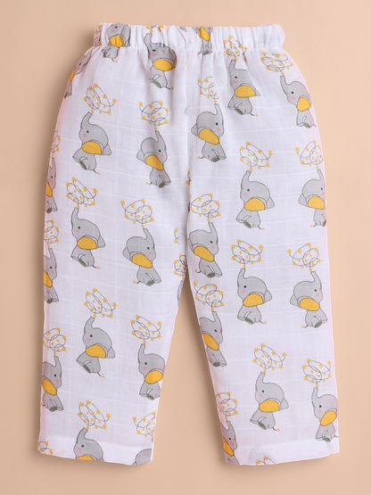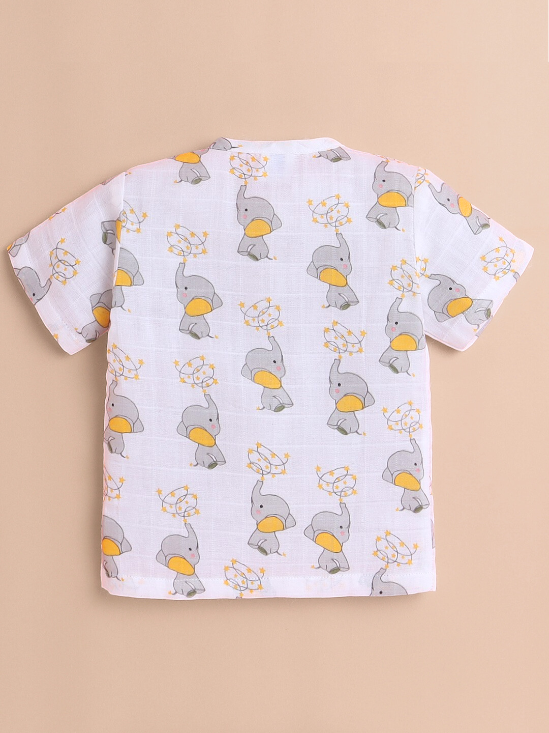 Polka Tots Soft Muslin Cotton Half sleeves Jumbo jr. print Jhabla and Pant Set - White
