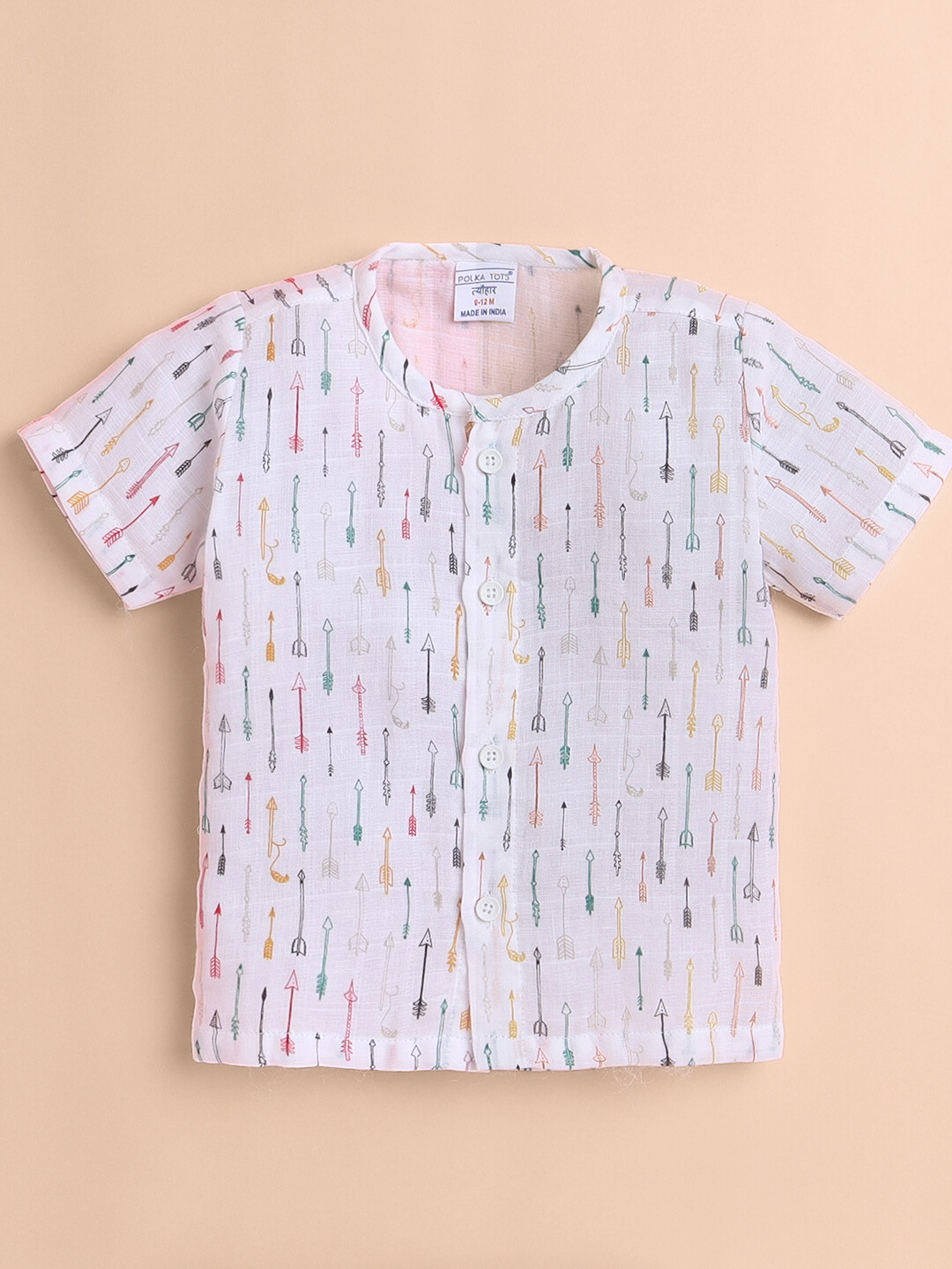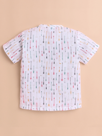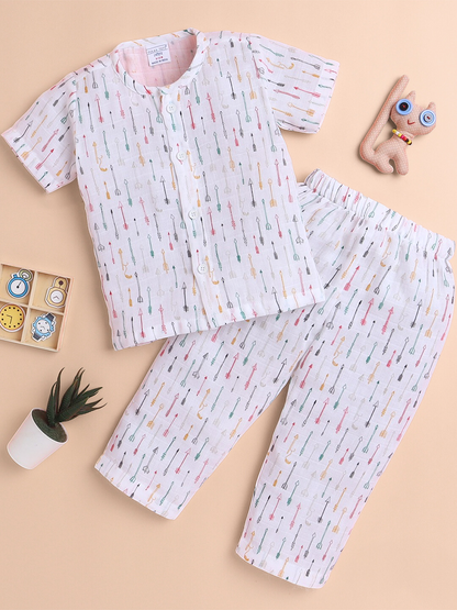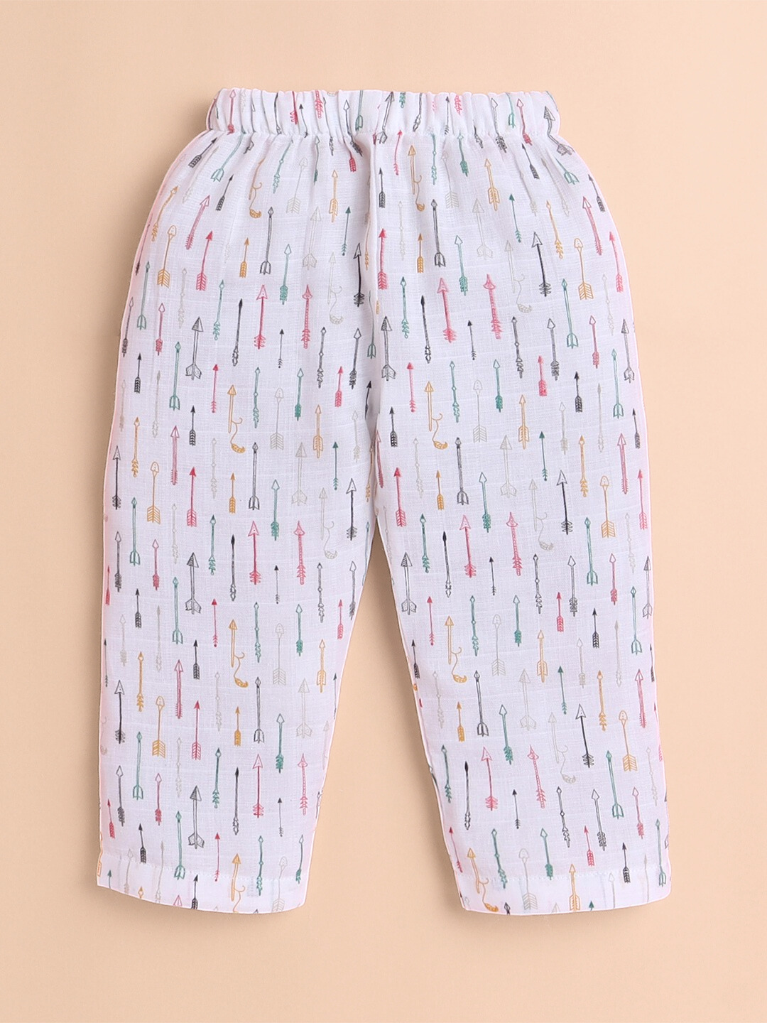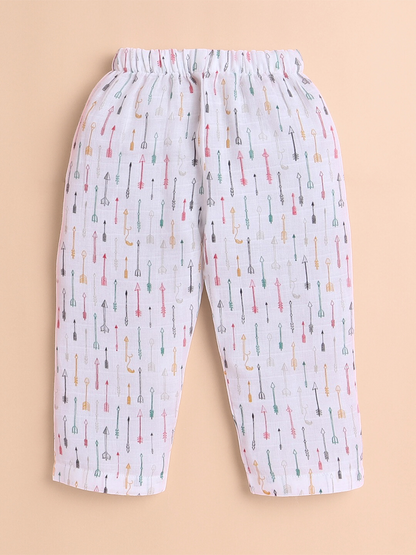 Polka Tots Soft Muslin Cotton Half sleeves Cupid print Jhabla and Pant Set - White