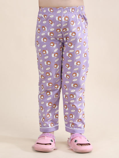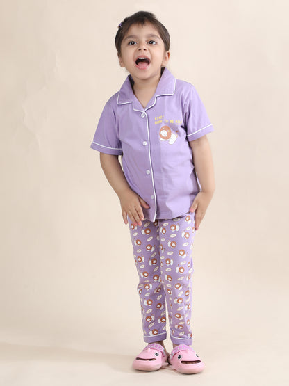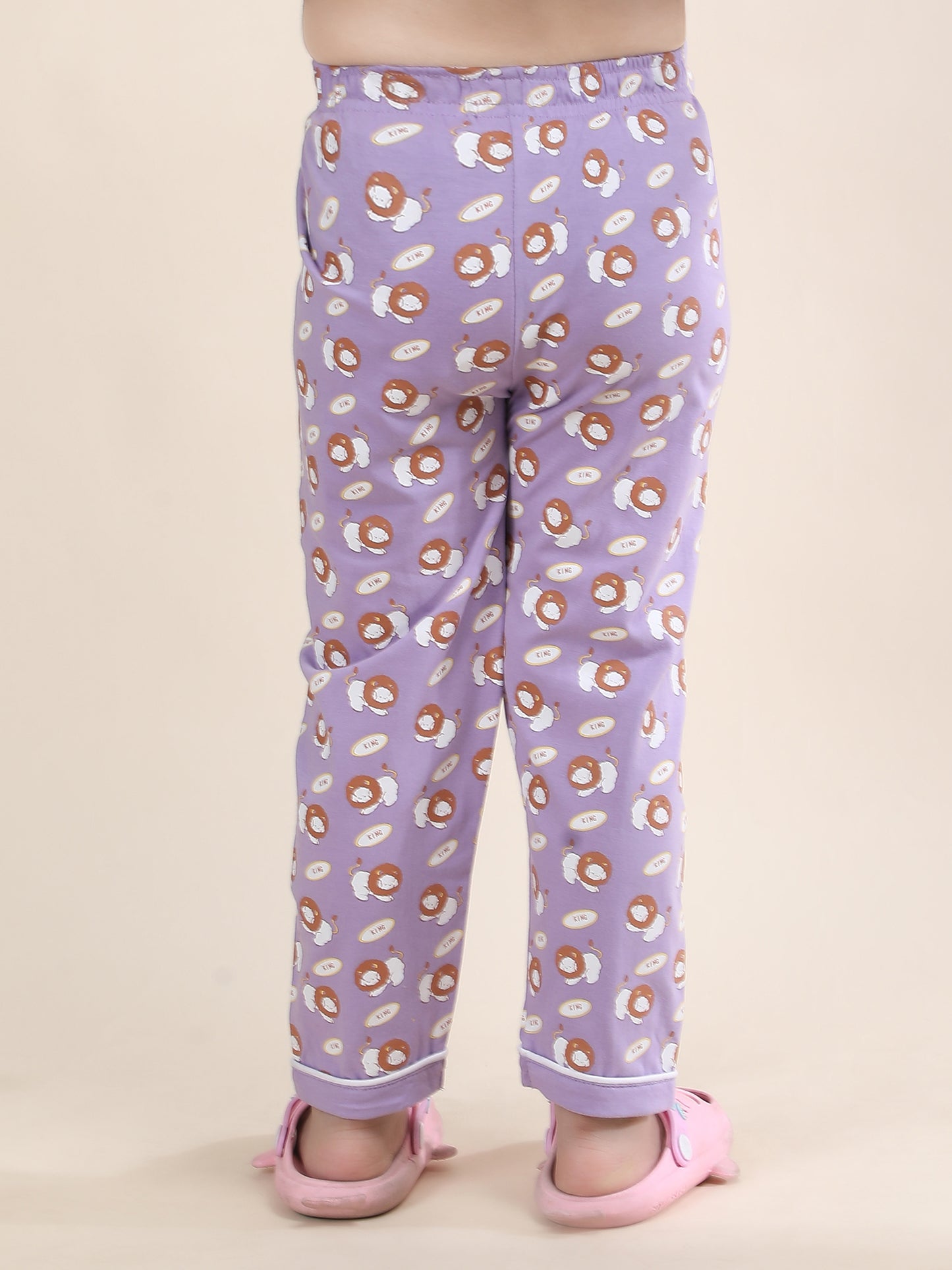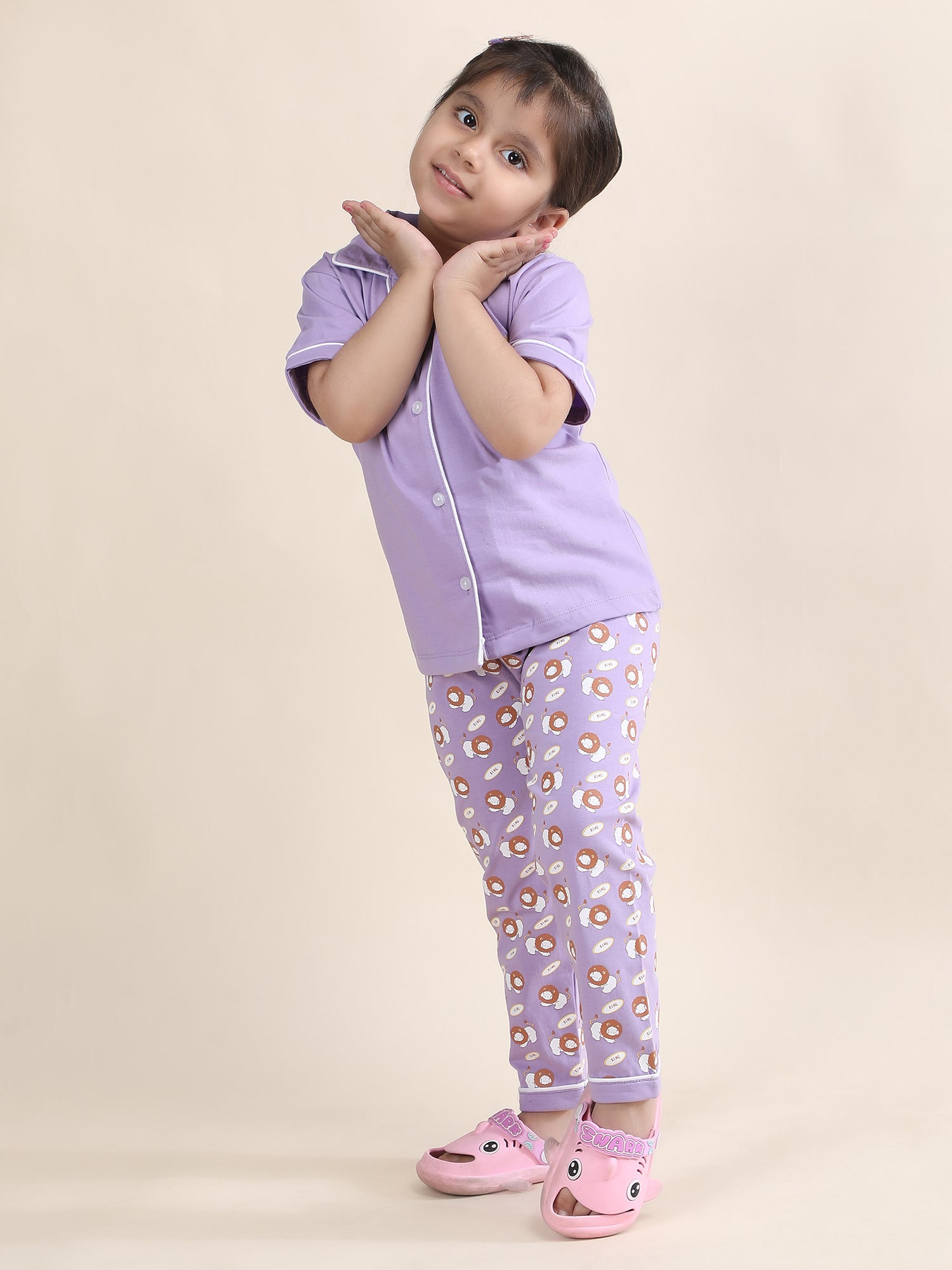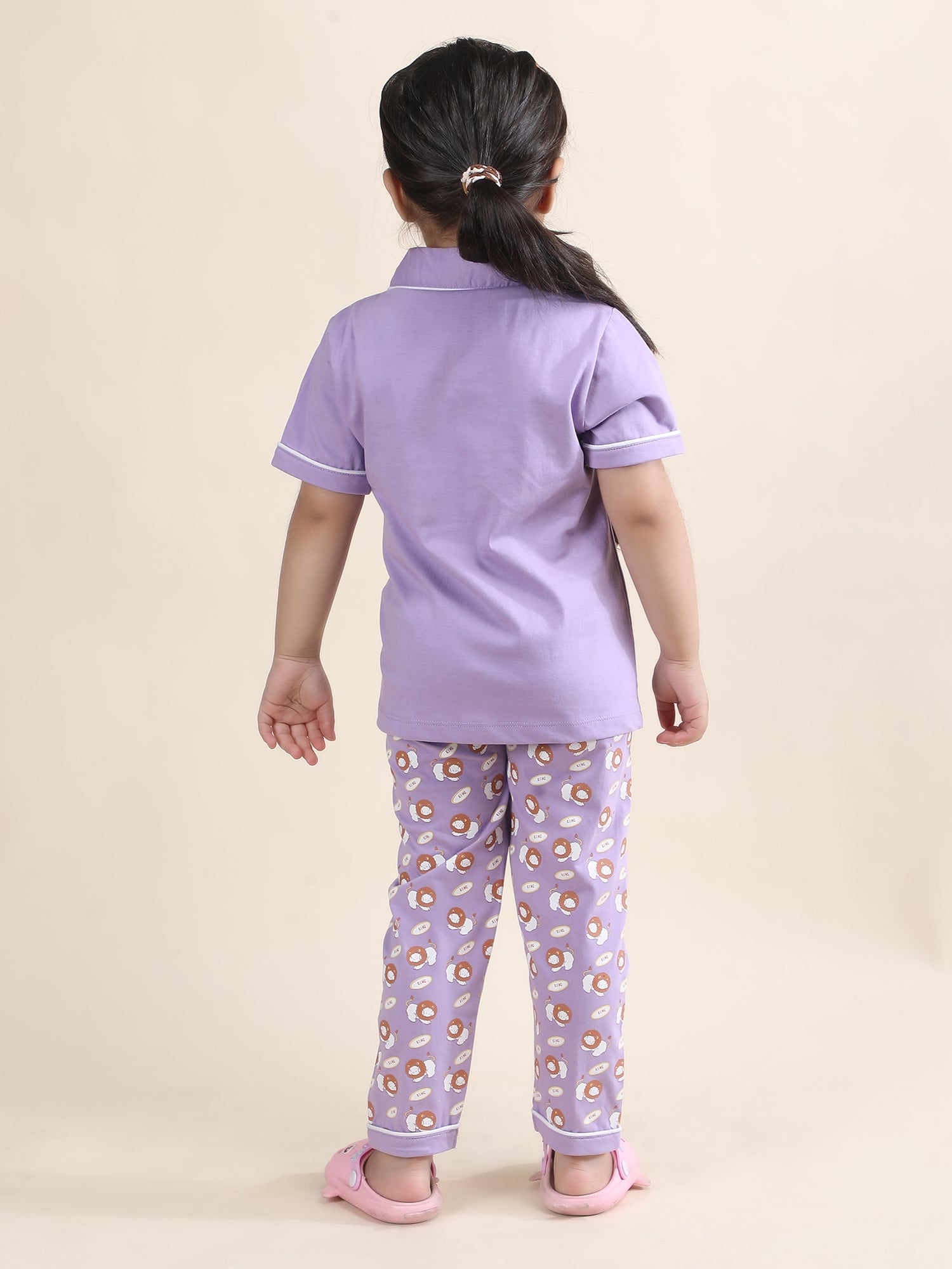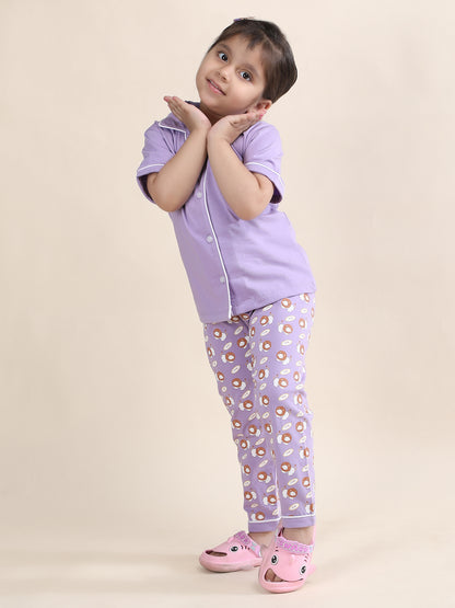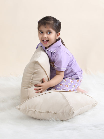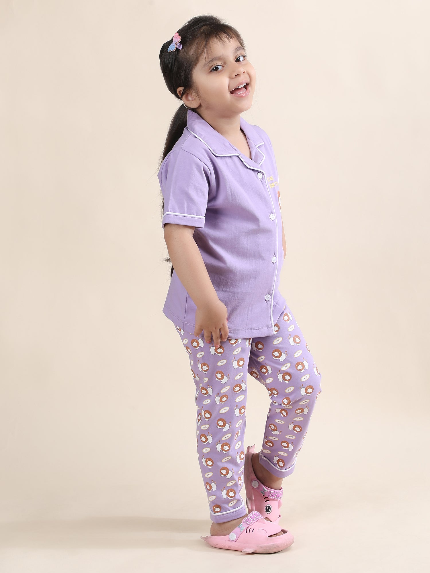 Polka Tots Half sleeves Cub print Night Suit - Lavender