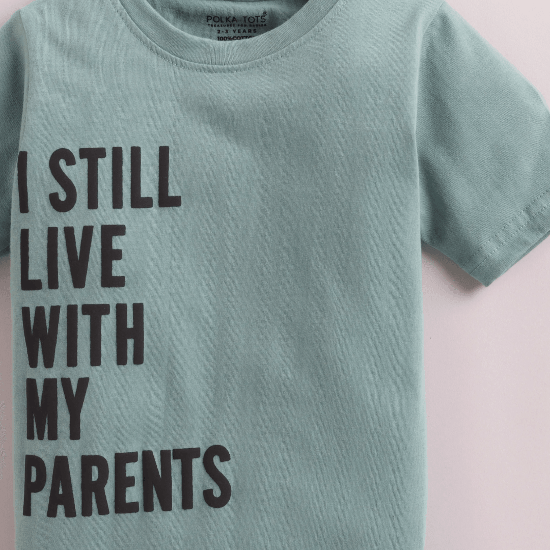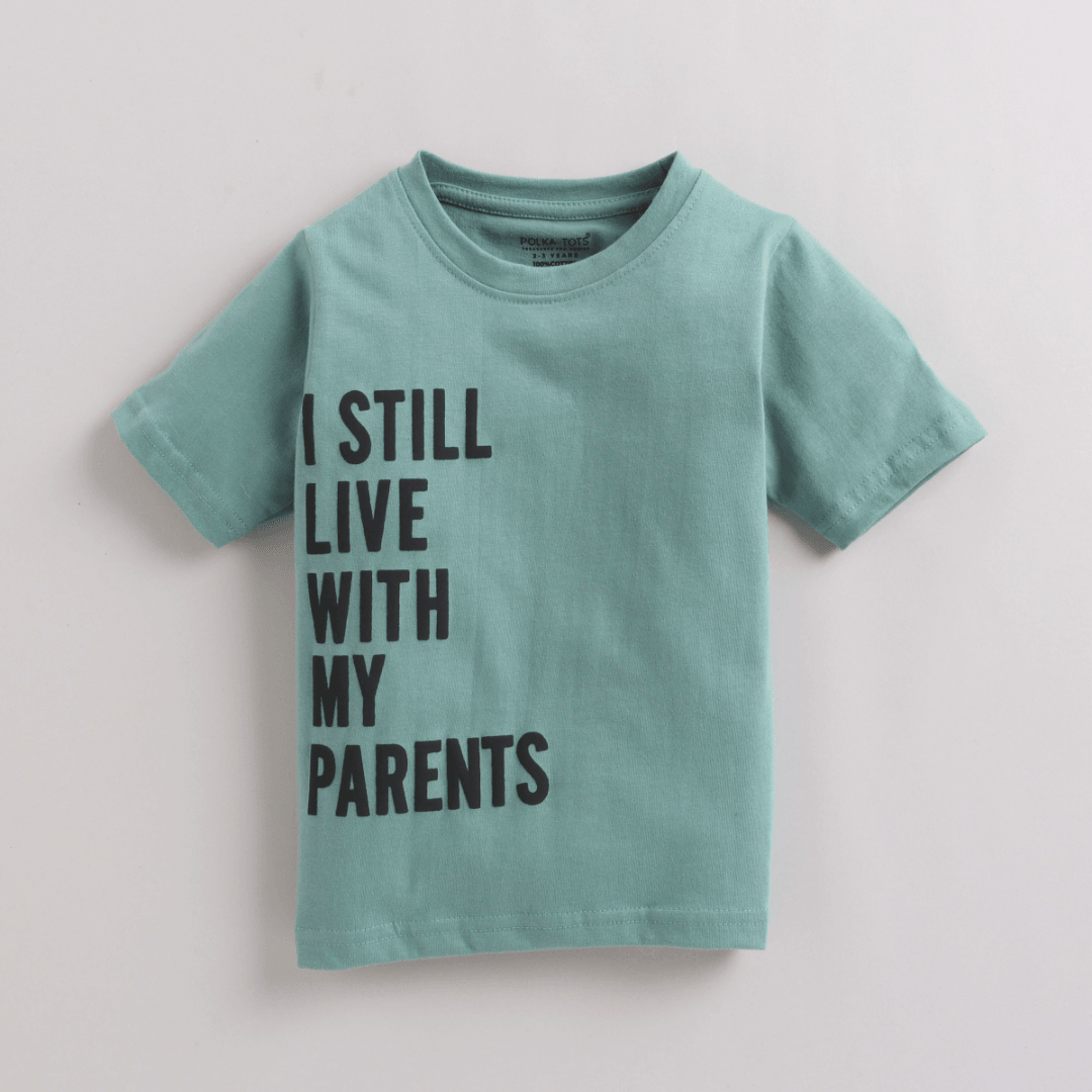 Polka Tots Half Sleeves Quote Print Tshirt - Green