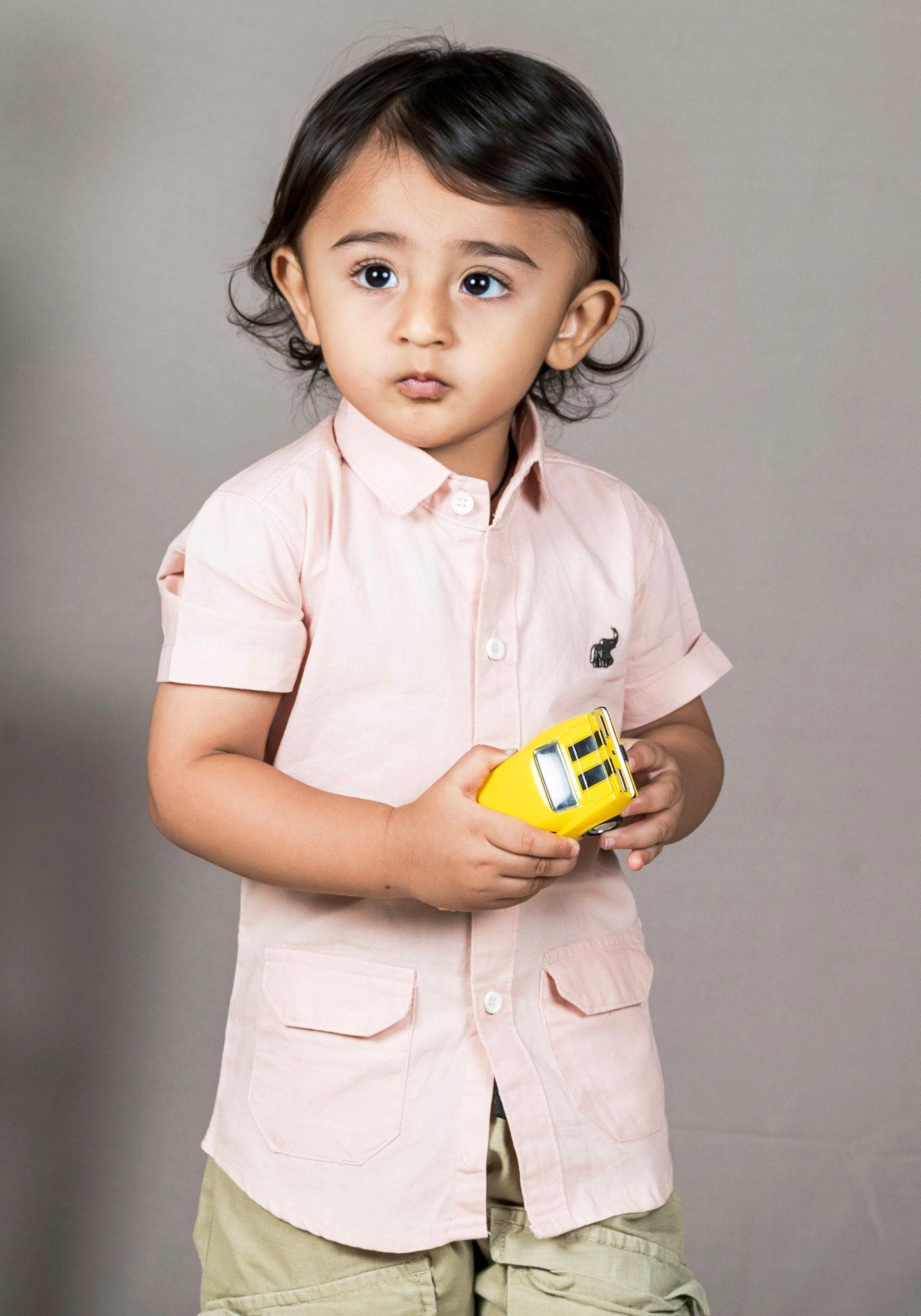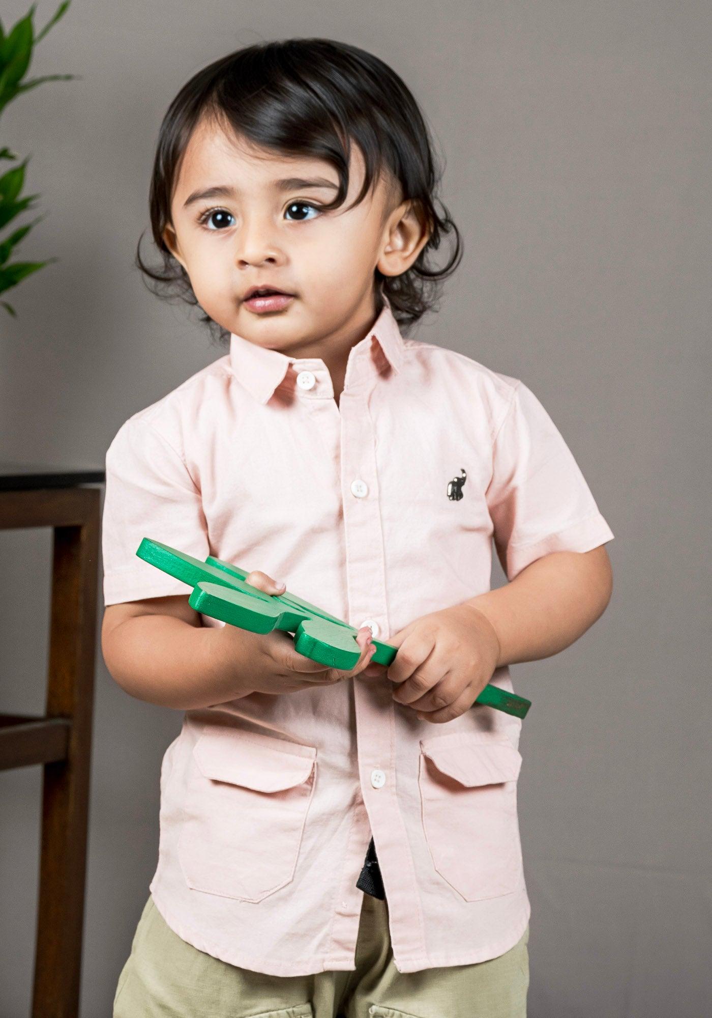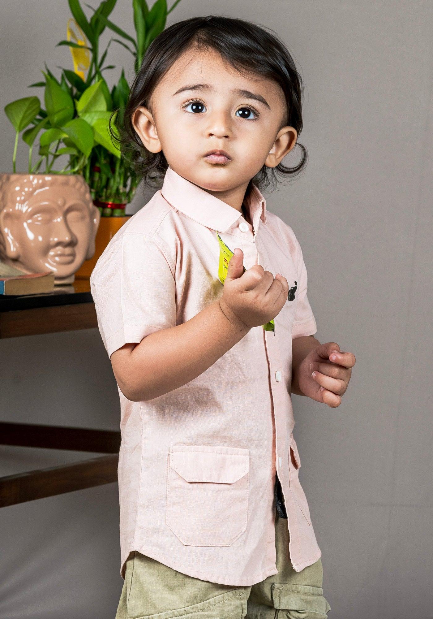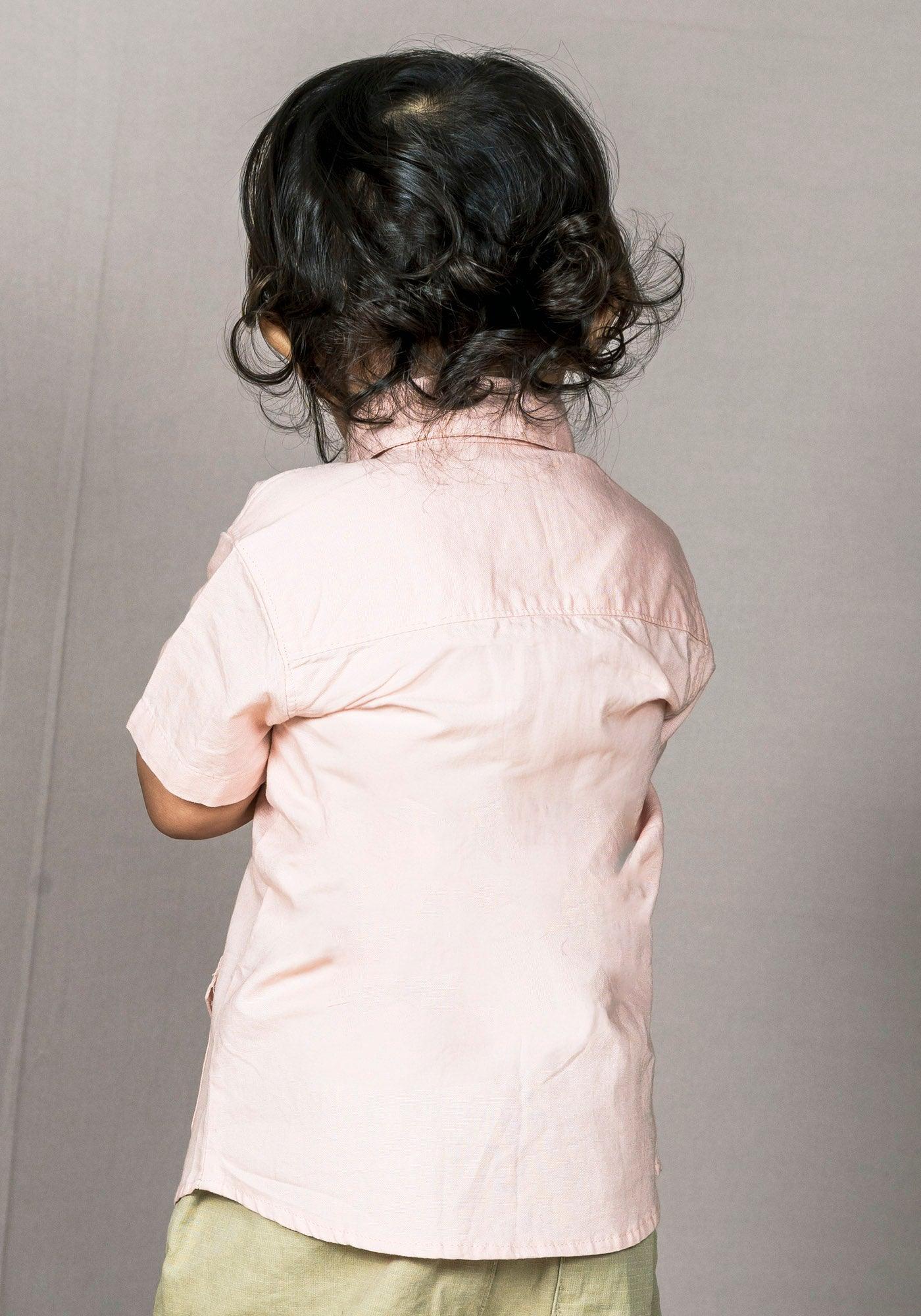 Polka Tots Half Sleeves Solid Shirt - Peach
