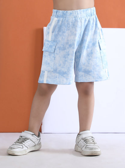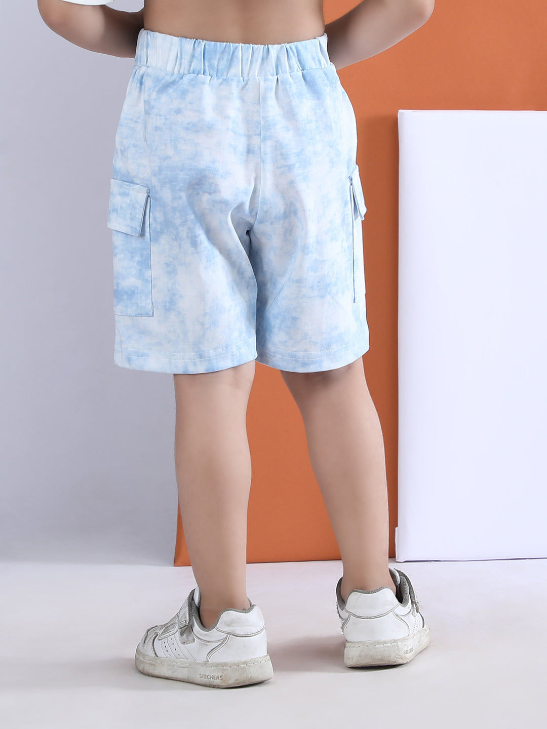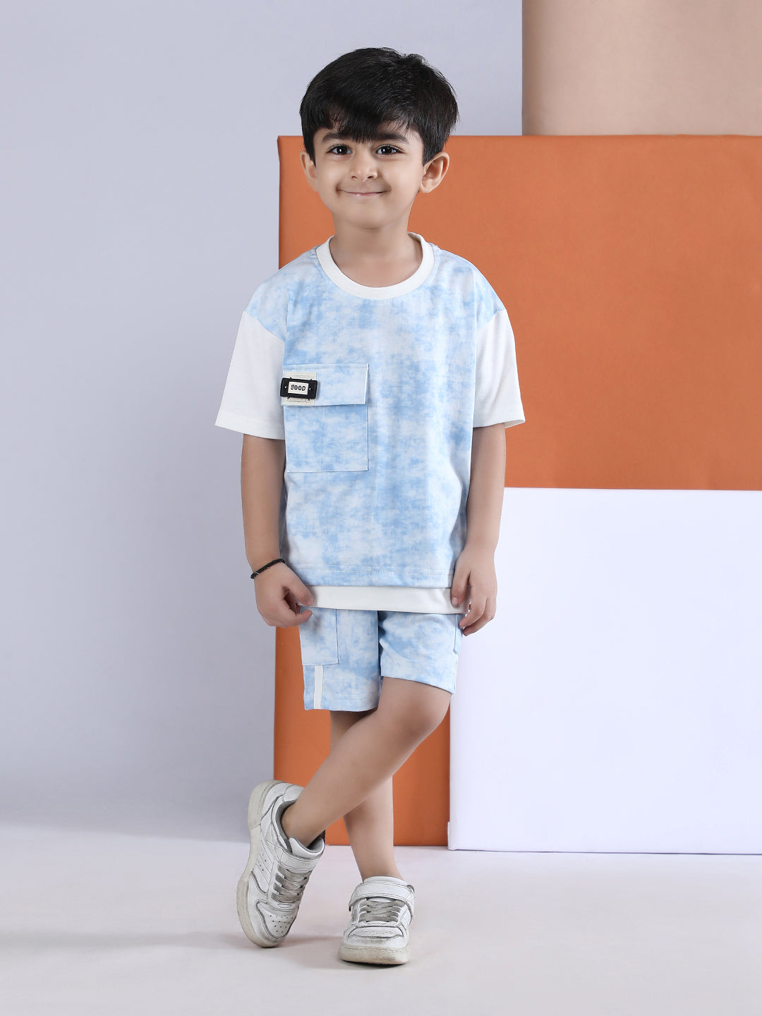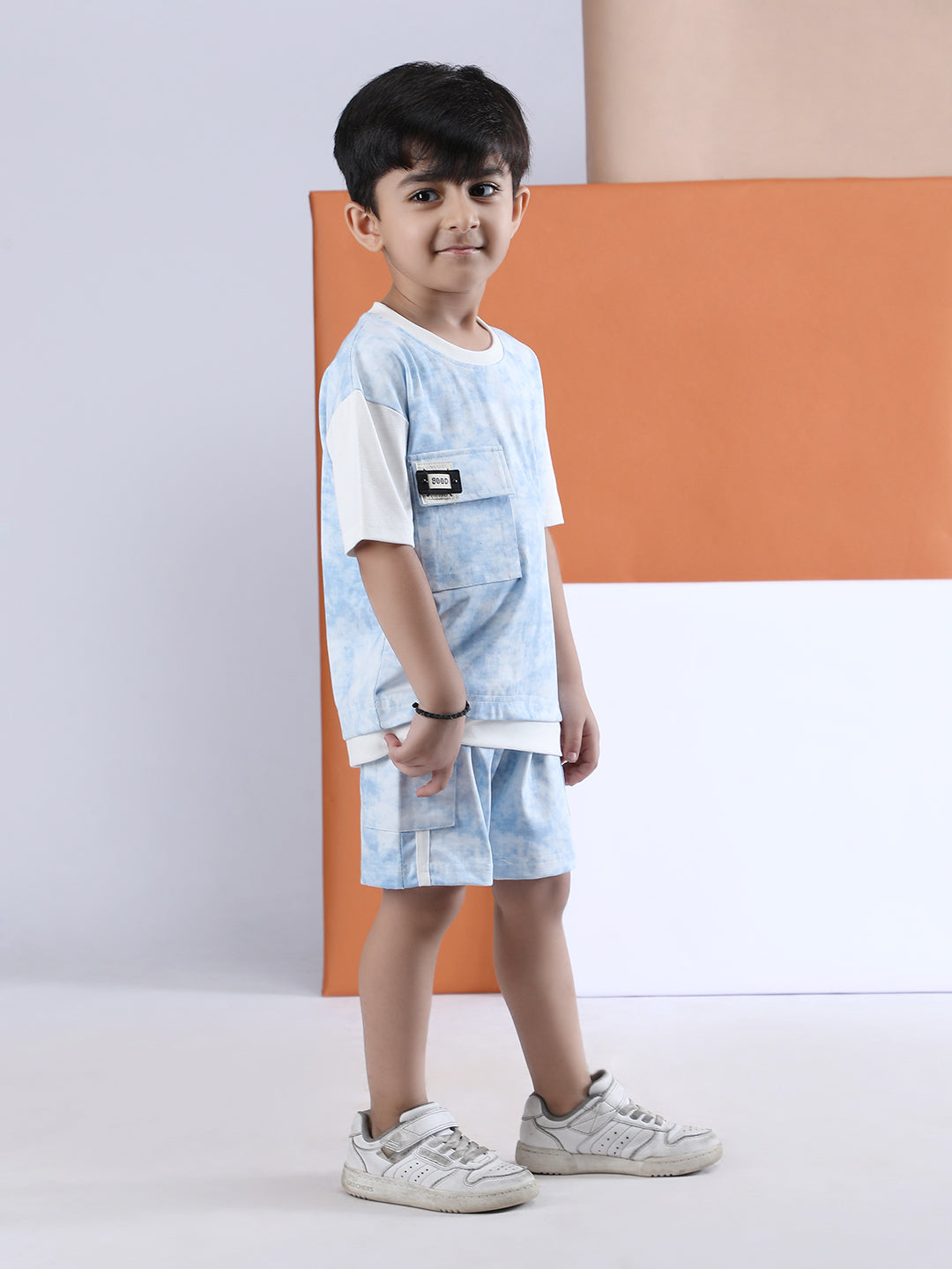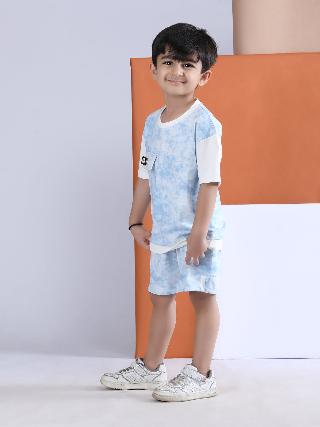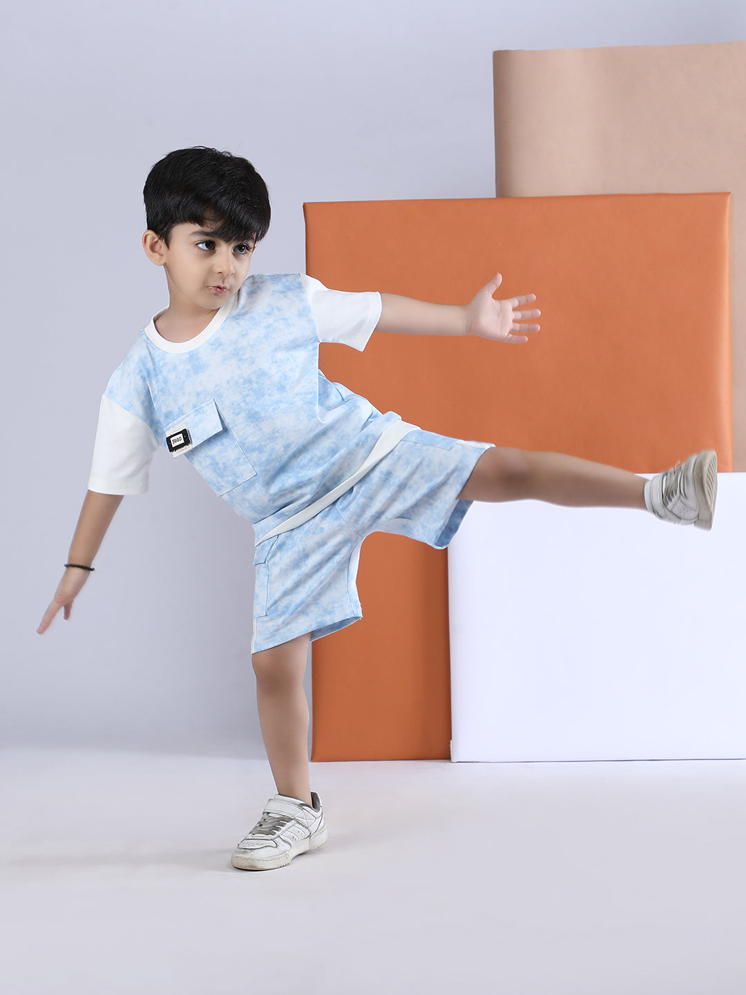 Polka Tots Half Sleeves Tie-Dye T-Shirt Shorts with Pocket Detail - Blue