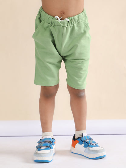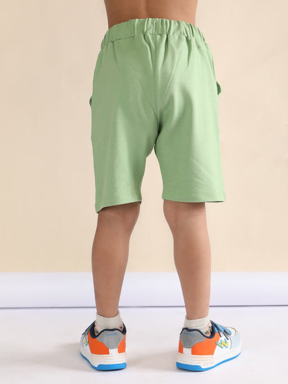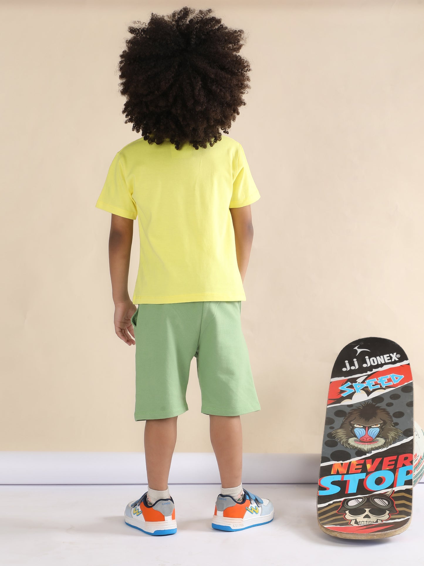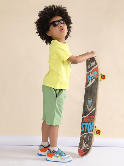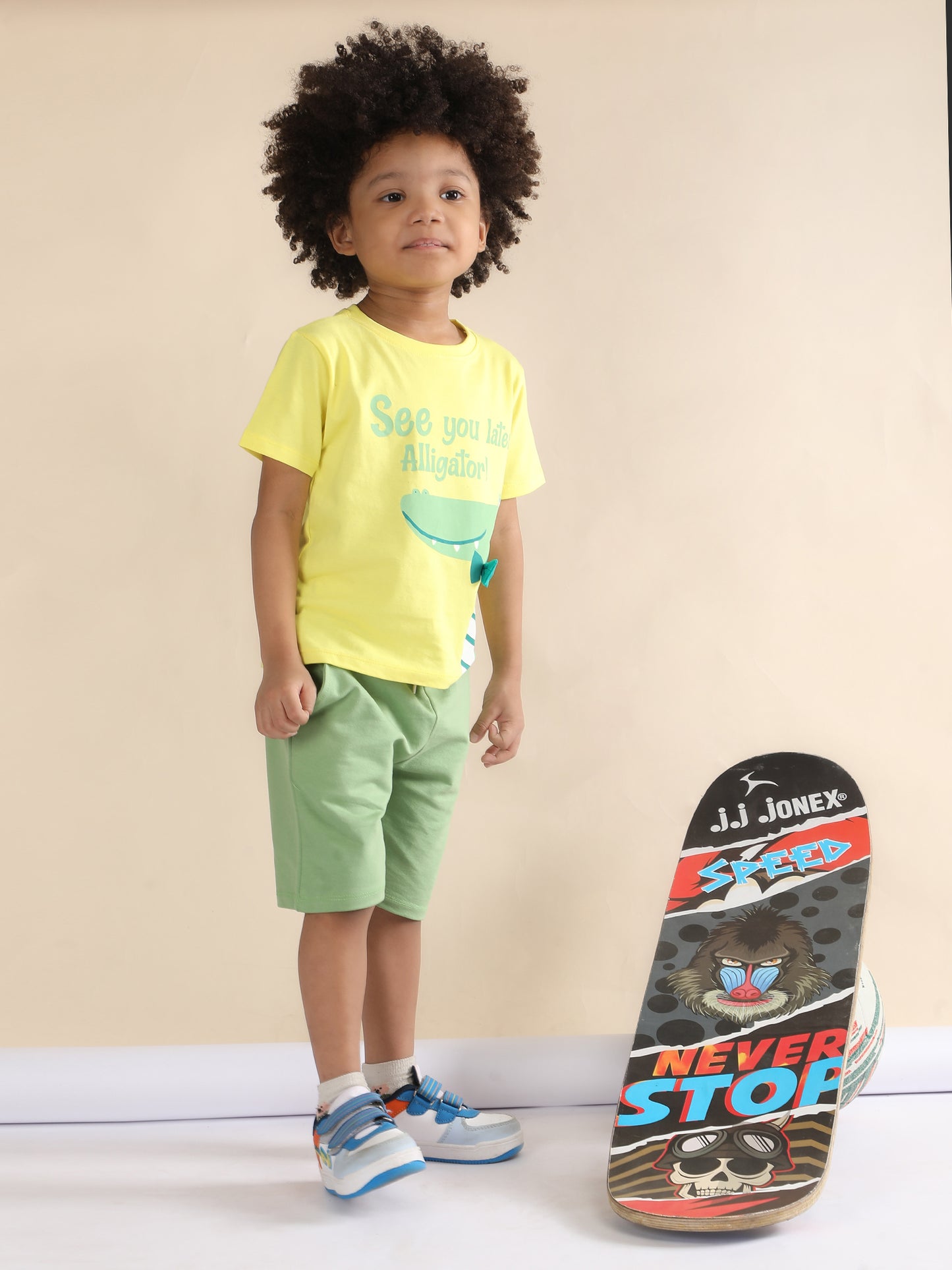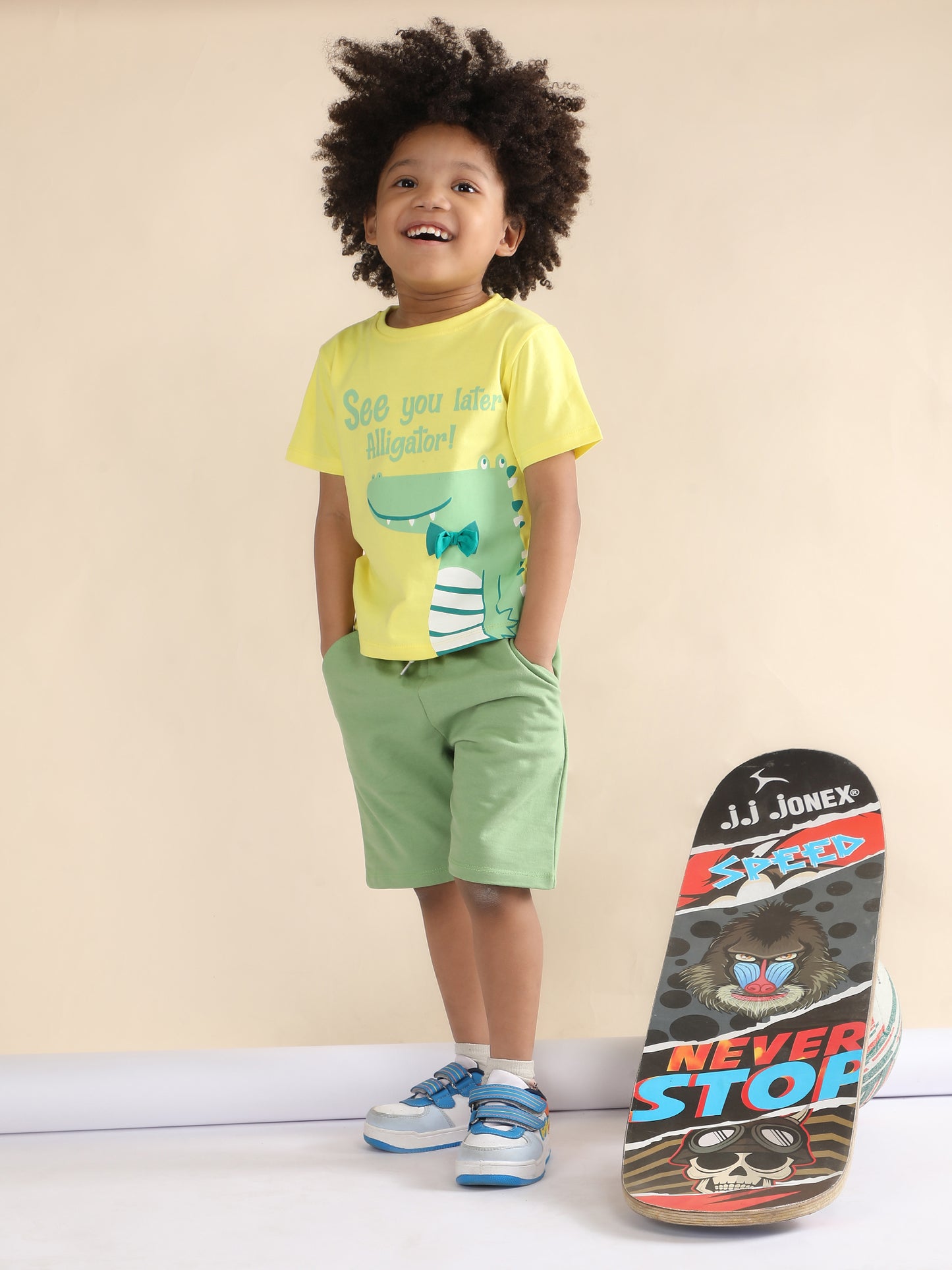 Polka Tots Half Sleeves Alligator print T-Shirt Shorts - Yellow and Green