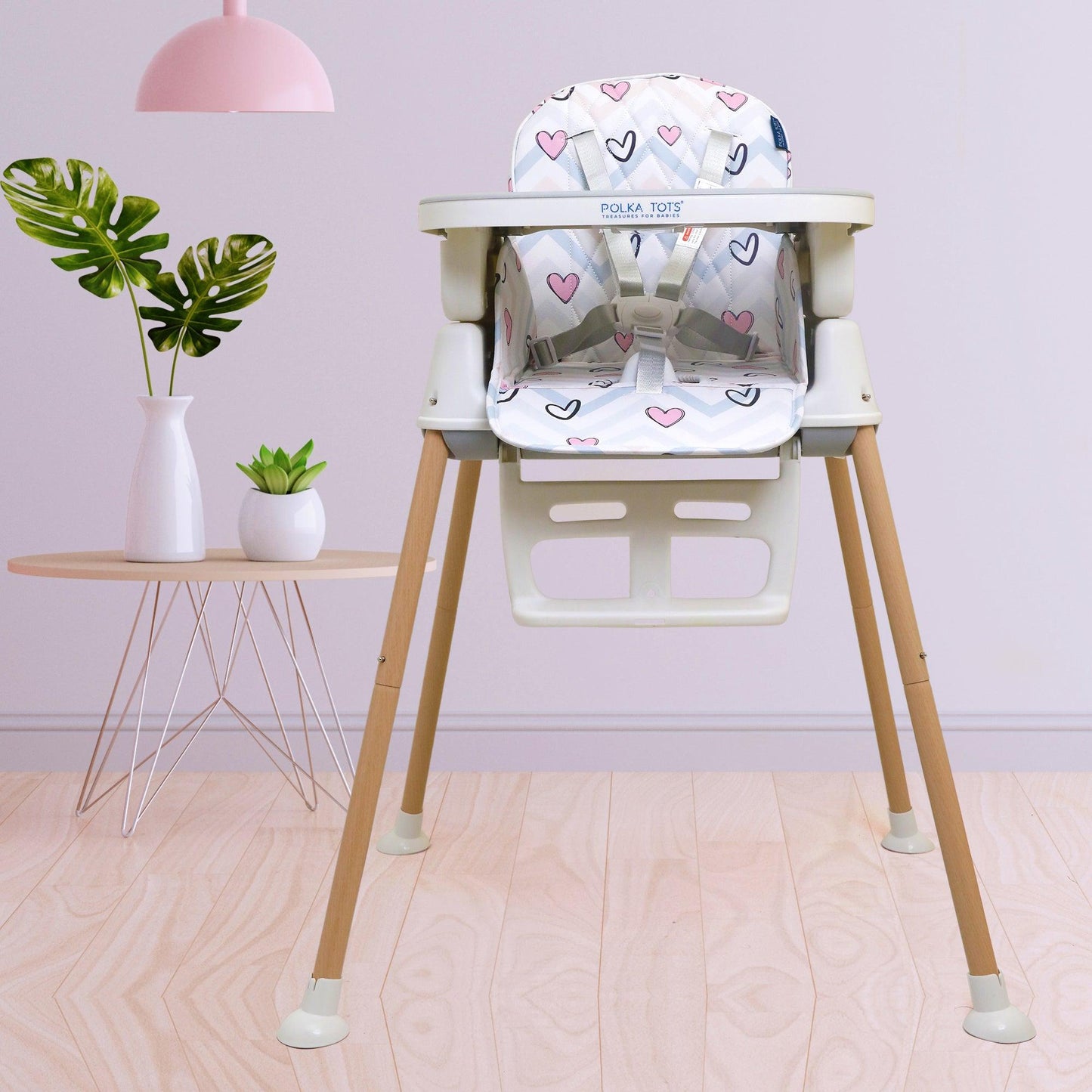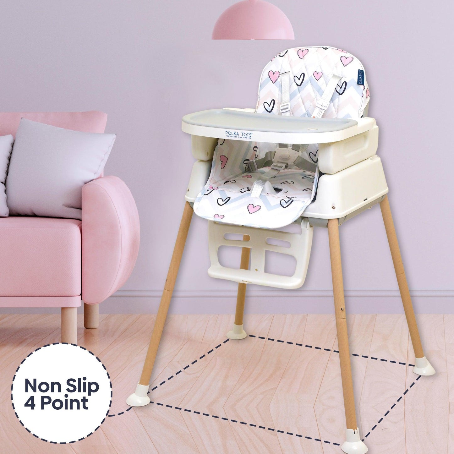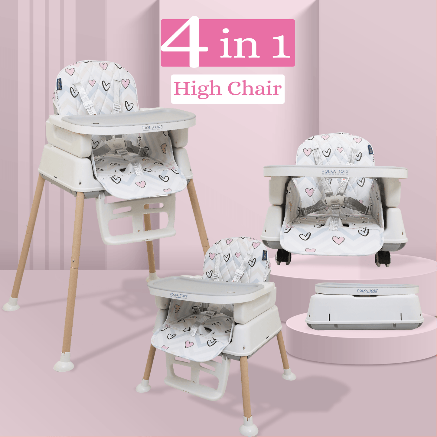Polka Tots Grow & Glide 4 in 1 Convertible Heart Design High Chair - (Pink)