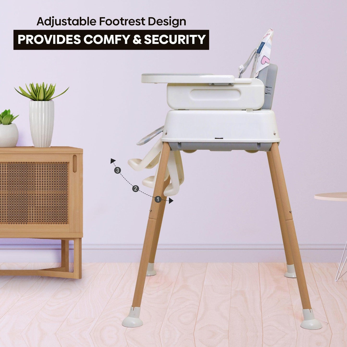 - Adjustable Height - With an adjustable height feature, it ensures that your child can comfortably sit at any table height, whether its a low coffee table or a standard dining table. Simply adjust the height to the desired level with ease, providing a customized seating solution for your child at every meal.