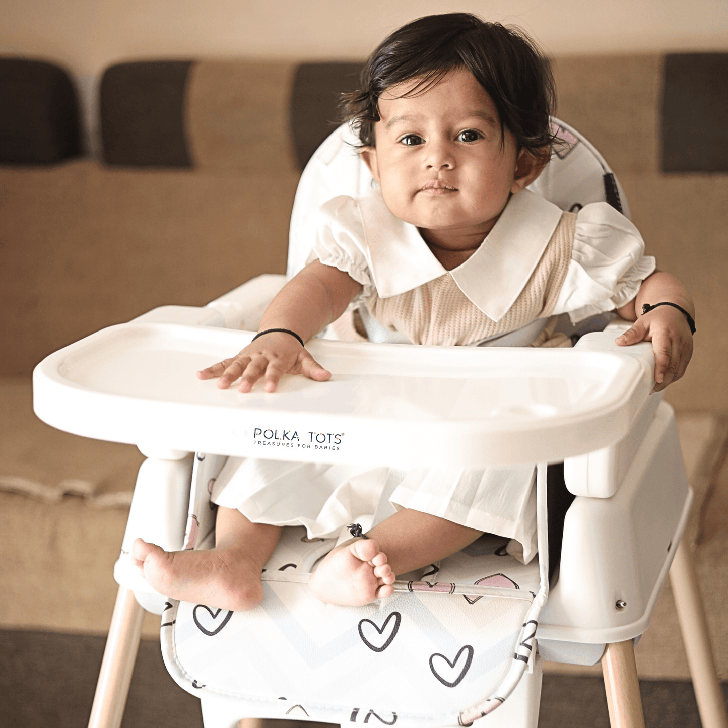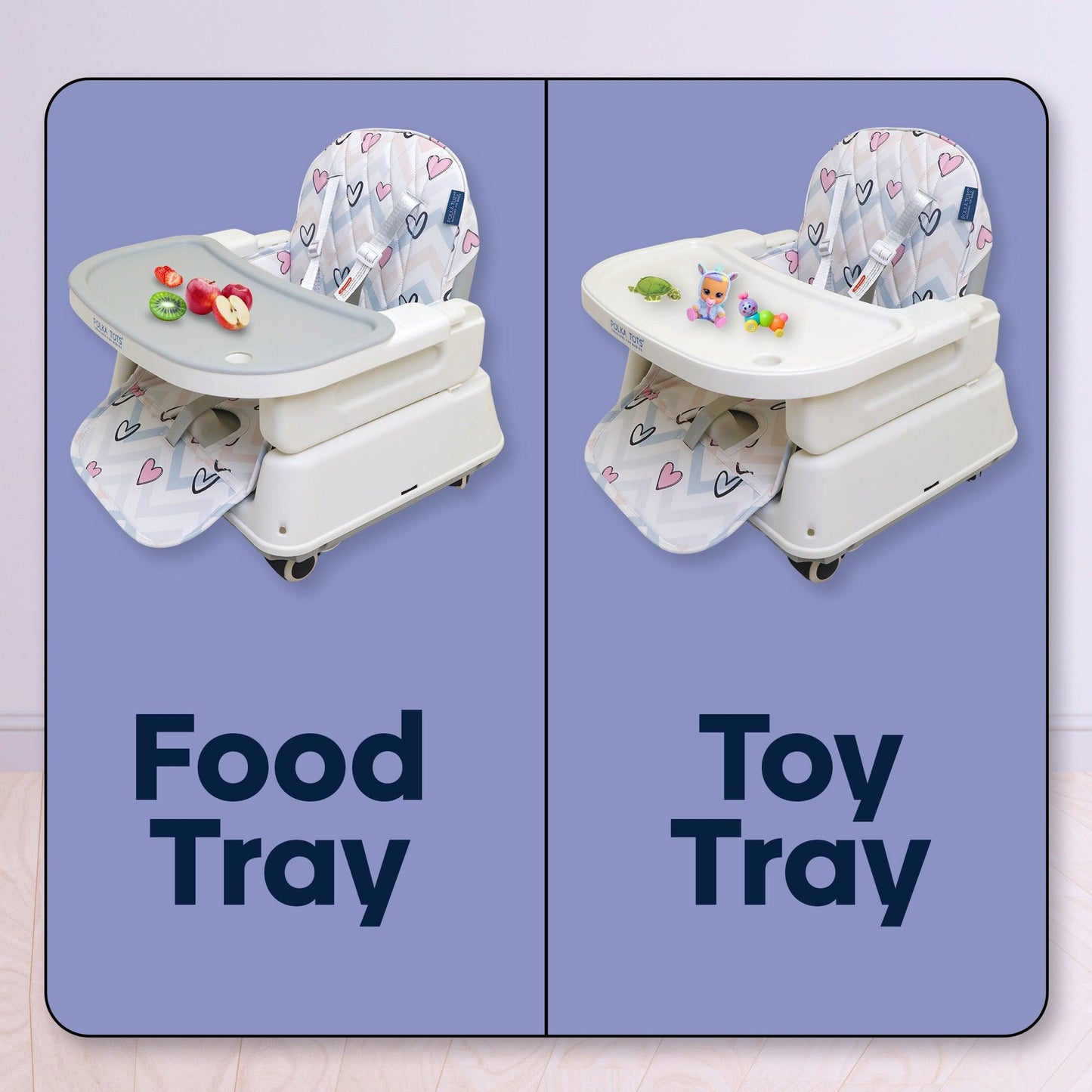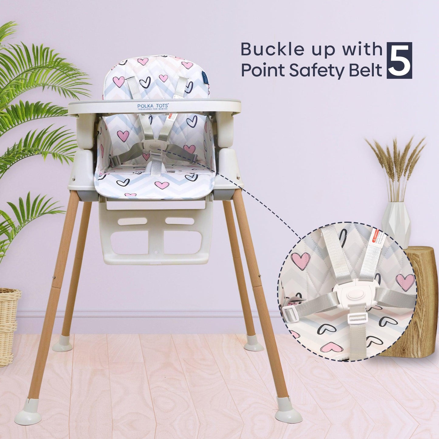 Look for a highchair with safety, adjustability, comfort, ease of cleaning, foldability, portability, affordability & Polka Tots Kids Feeding Chairs have it all.