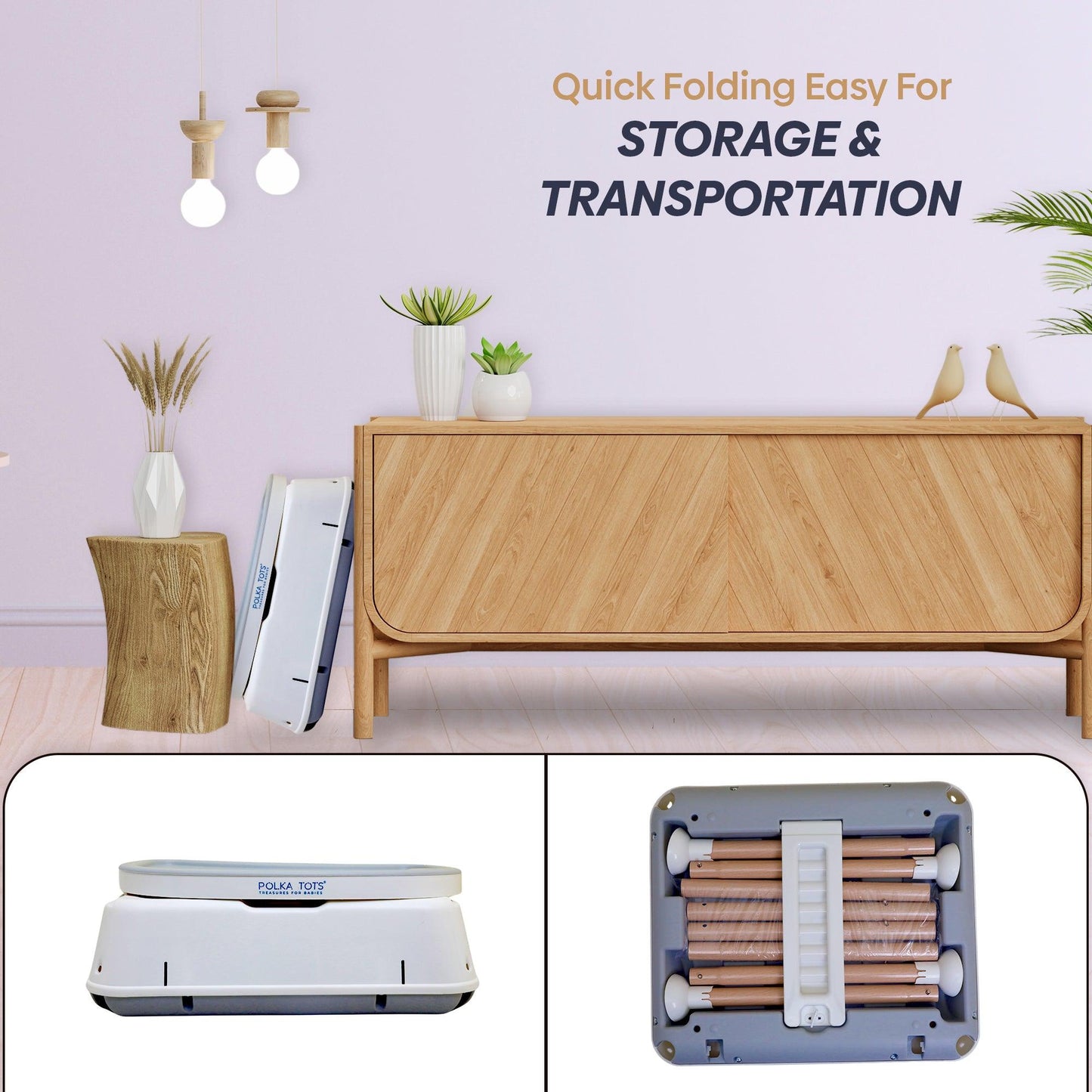 - Foldable Design- allows for easy storage and transportability, making it ideal for smaller living spaces, travel, and on-the-go families.