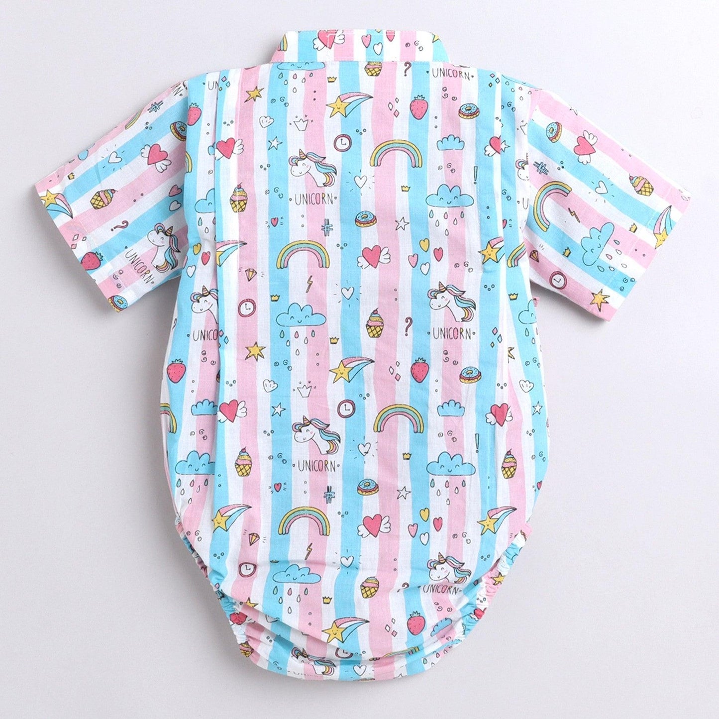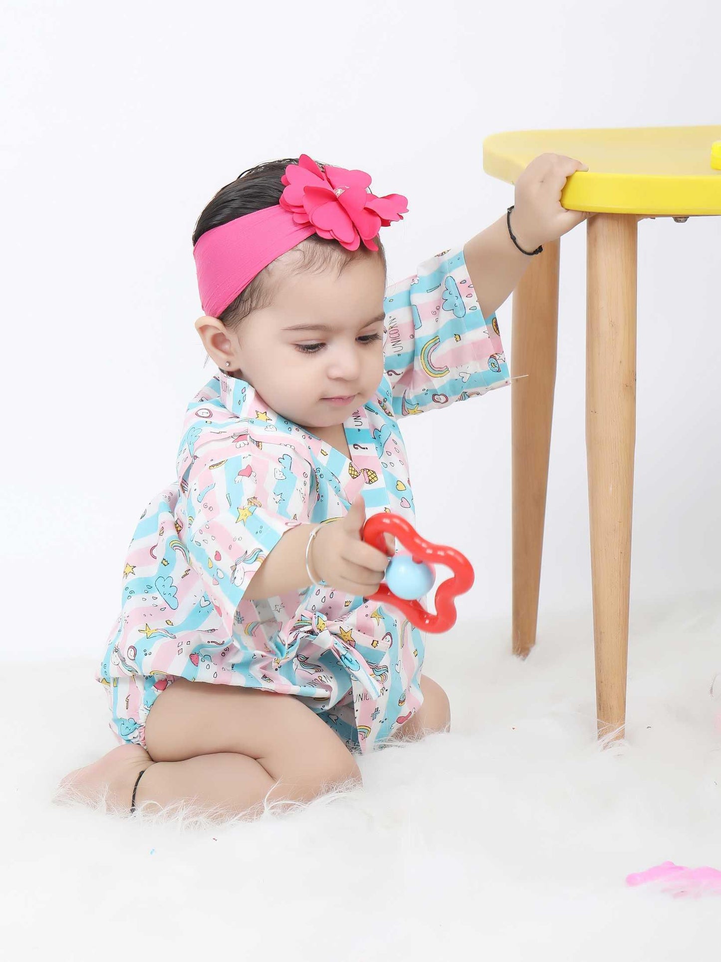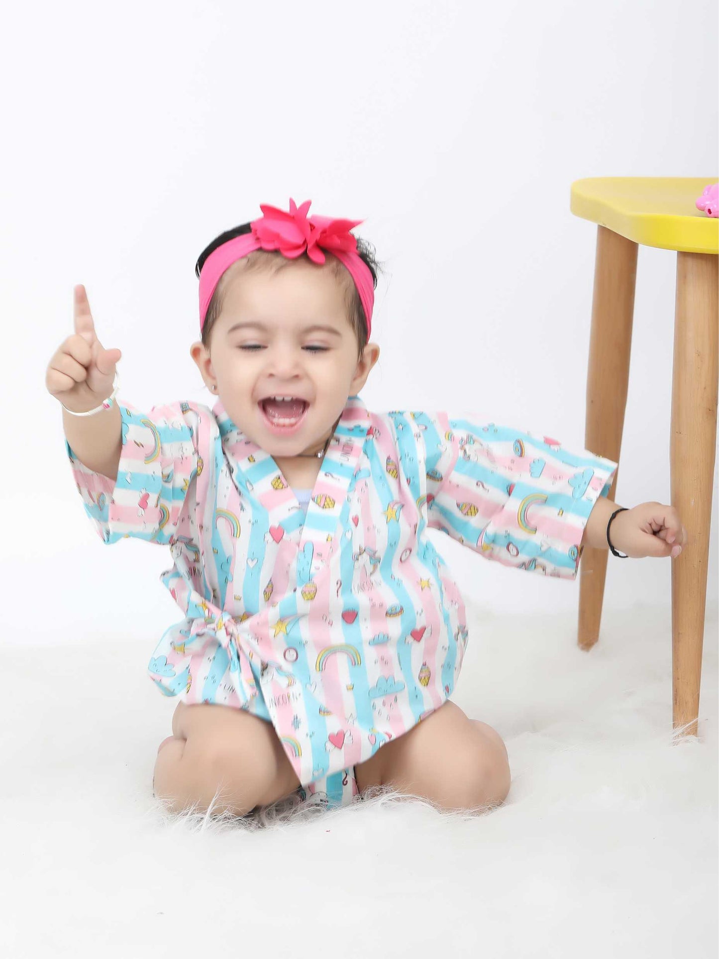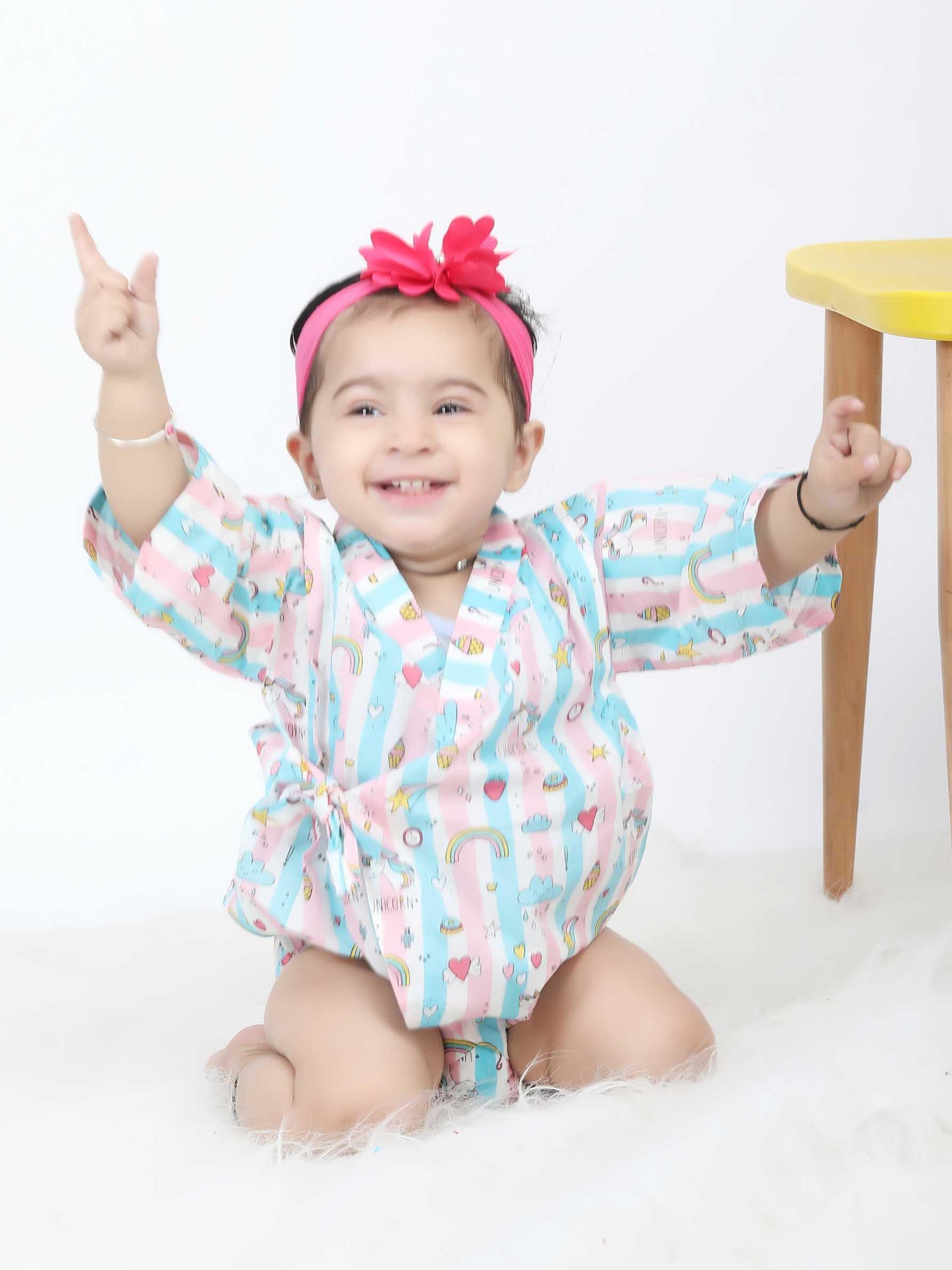 Polka Tots Unicorn print stripes Kimono Onesie - Pink