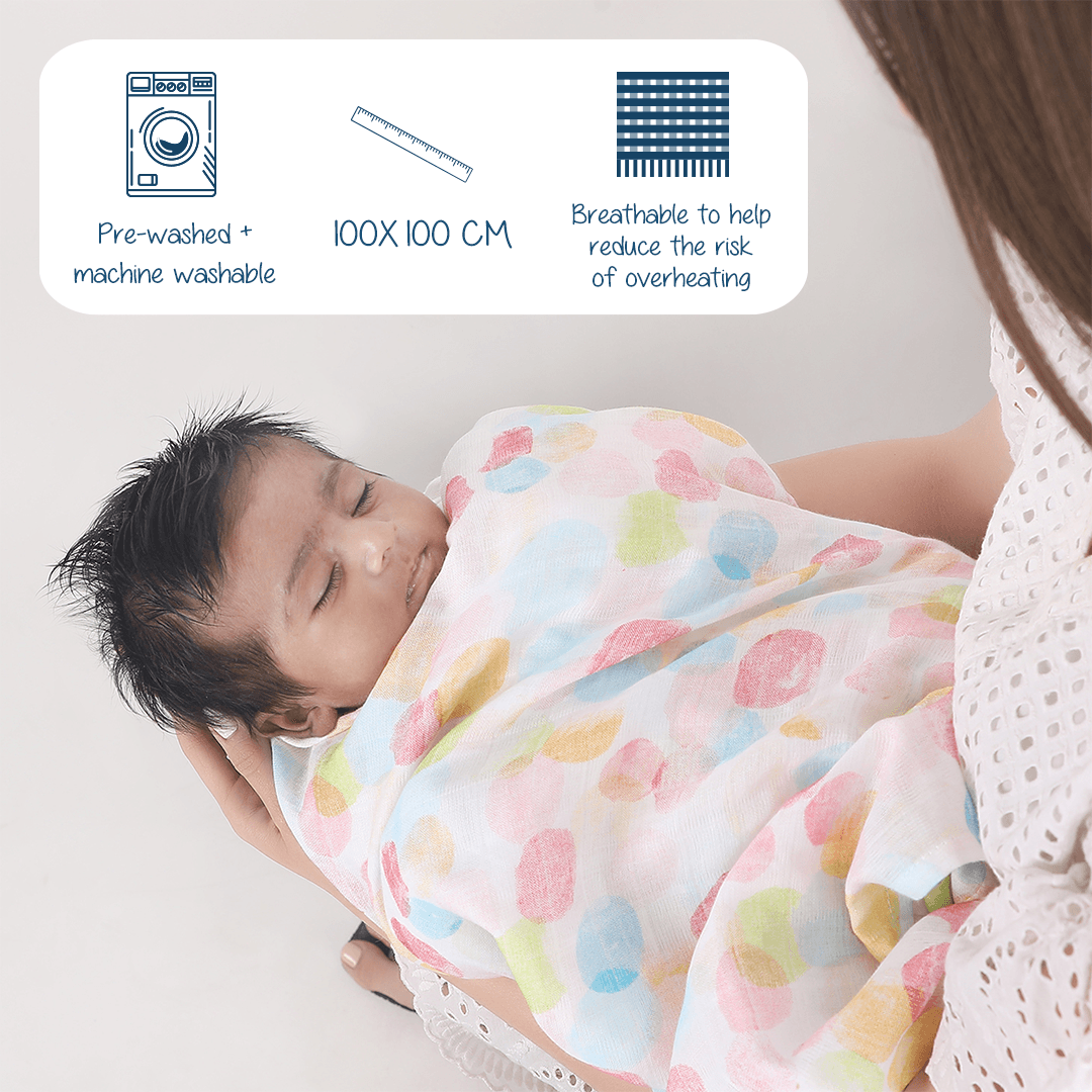 - Soft and Breathable Material: Polka Tots Swaddles are made from soft, breathable fabric like cotton to keep the baby comfortable.