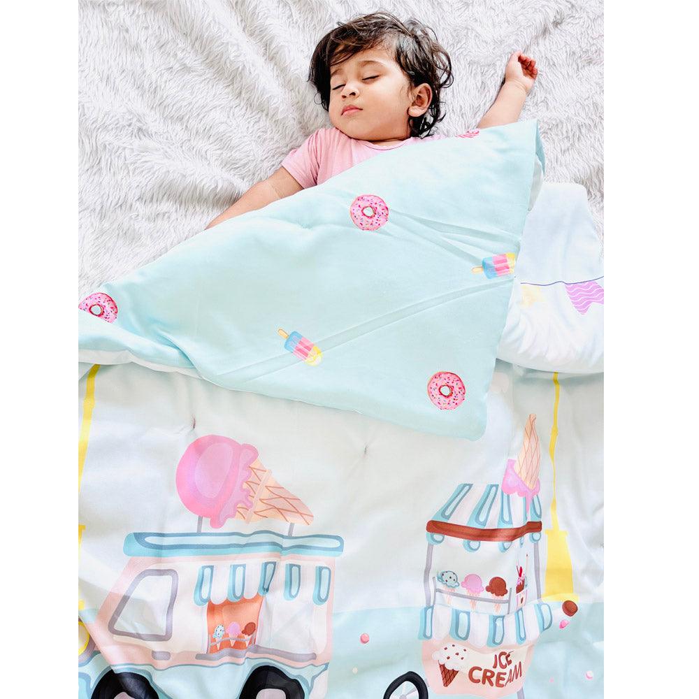 Polka Tots Kids Comforter Baby Blanket and Reversible Quilt 2 Way Design ( Ice-cream, 54 x 35 Inch )