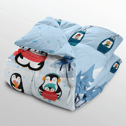 Polka Tots Kids Comforter Baby Blanket and Reversible Quilt 2 Way Design ( Penguin, 54 x 35 Inch )
