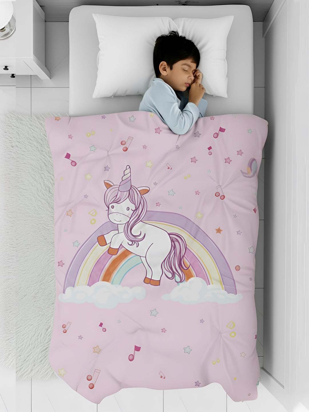Polka Tots Kids Comforter Baby Blanket and Reversible Quilt 2 Way Design ( Unicorn, 54 x 35 Inch )