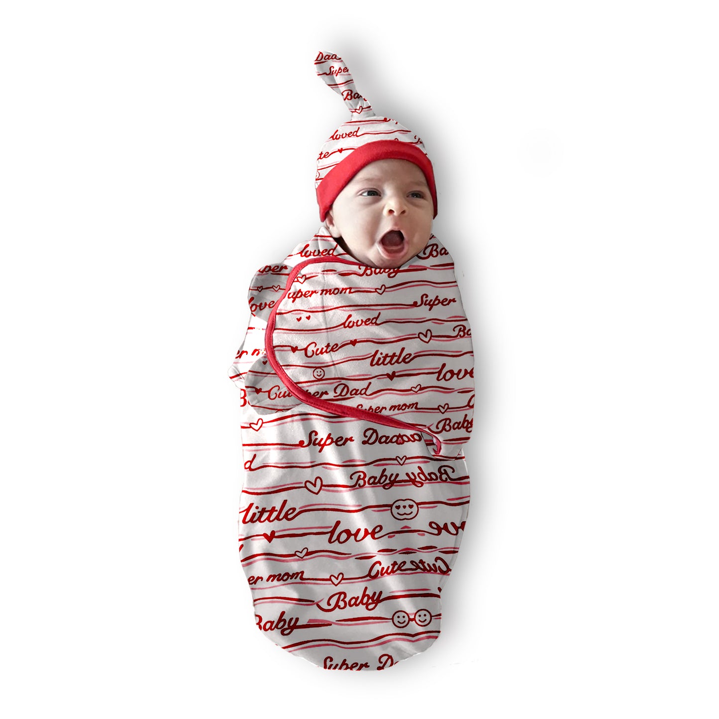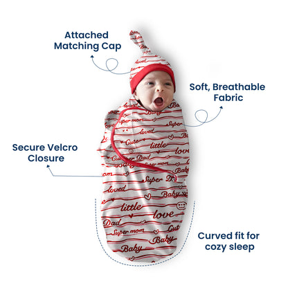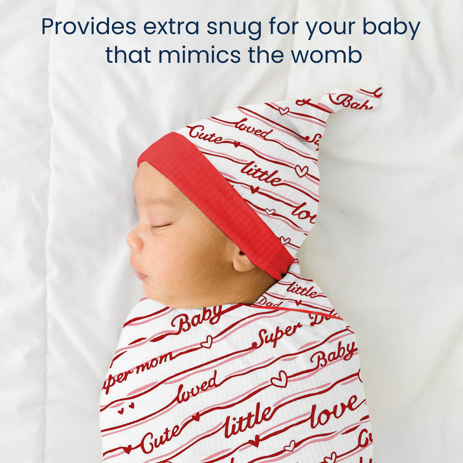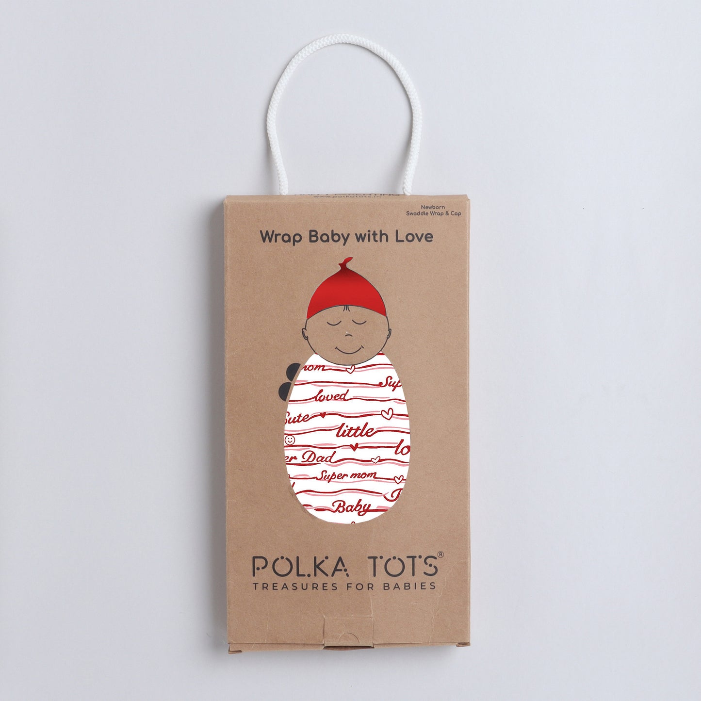 Polka Tots Love Print Swaddle wrap with Cap - Red