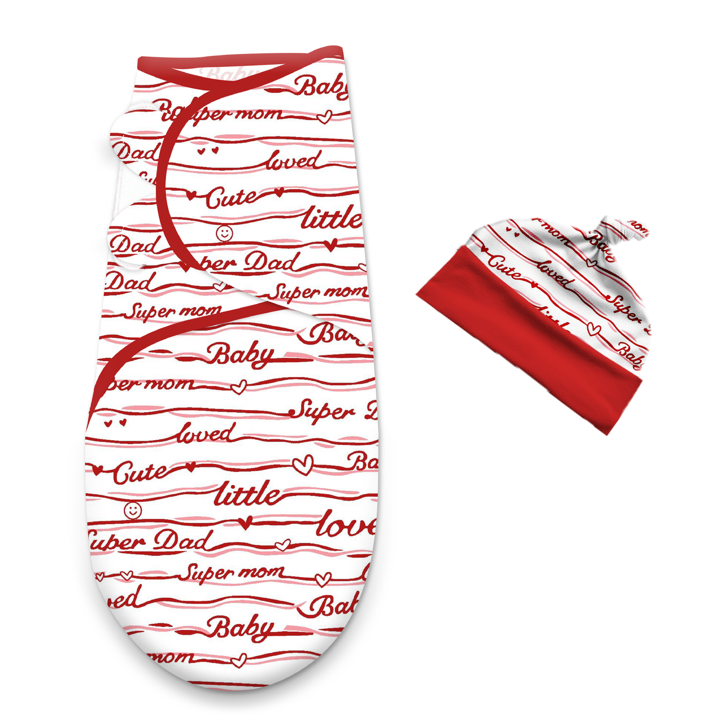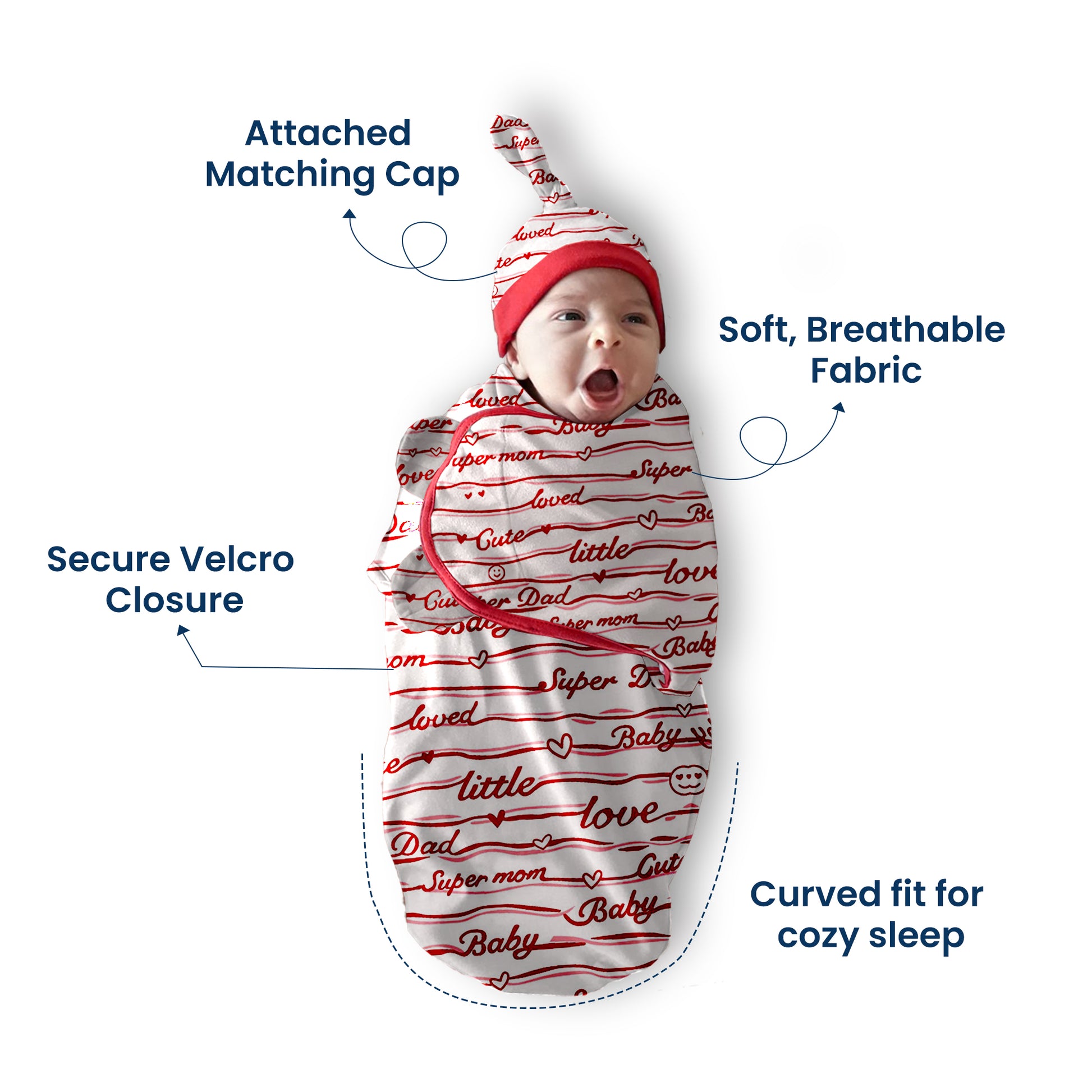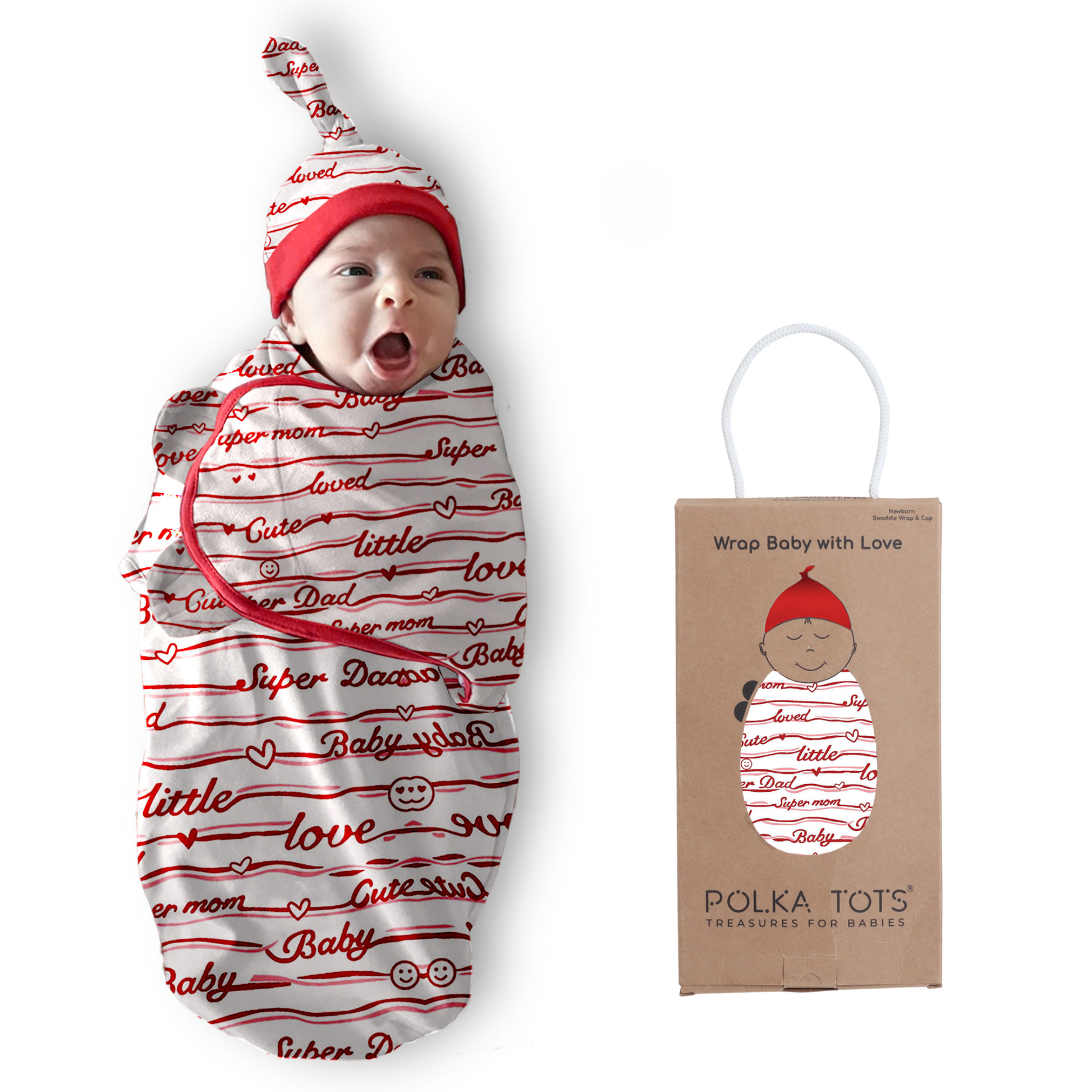 Polka Tots Love Print Swaddle wrap with Cap - Red
