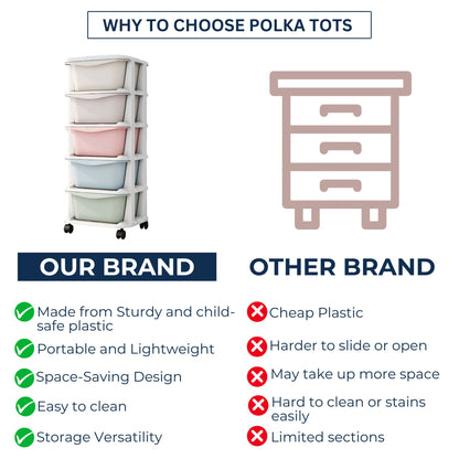 Polka Tots Multi-Purpose Kids Storage Rainbow Organiser Drawer Rack - Pastle Stack