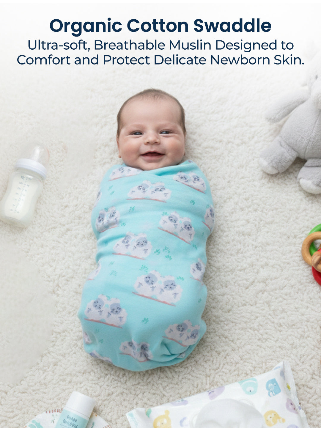 Introducing our Organic Muslin Cotton Swaddle Cloth, the perfect companion for your precious little one. Crafted with utmost care and dedication, this swaddling cloth is designed to provide unparalleled comfort and safety for your baby.
