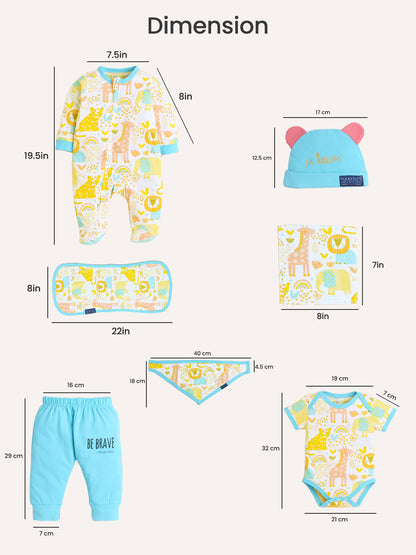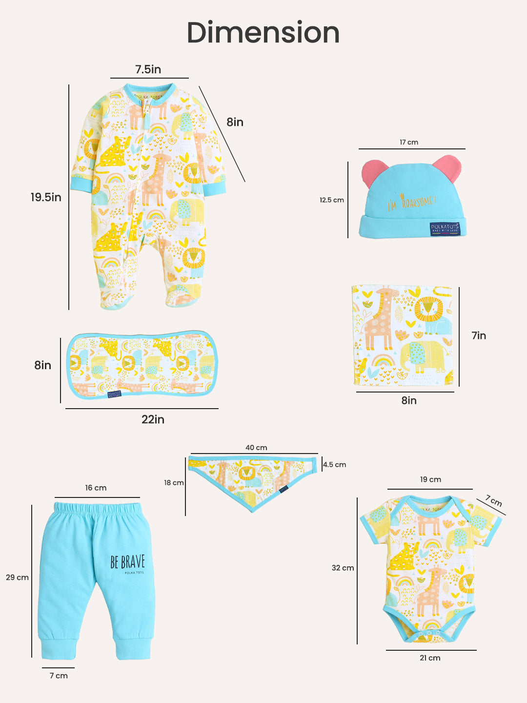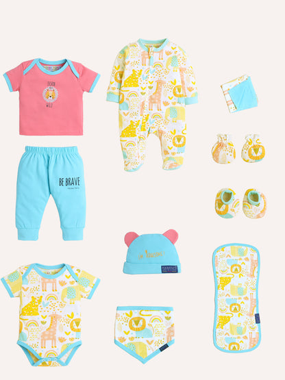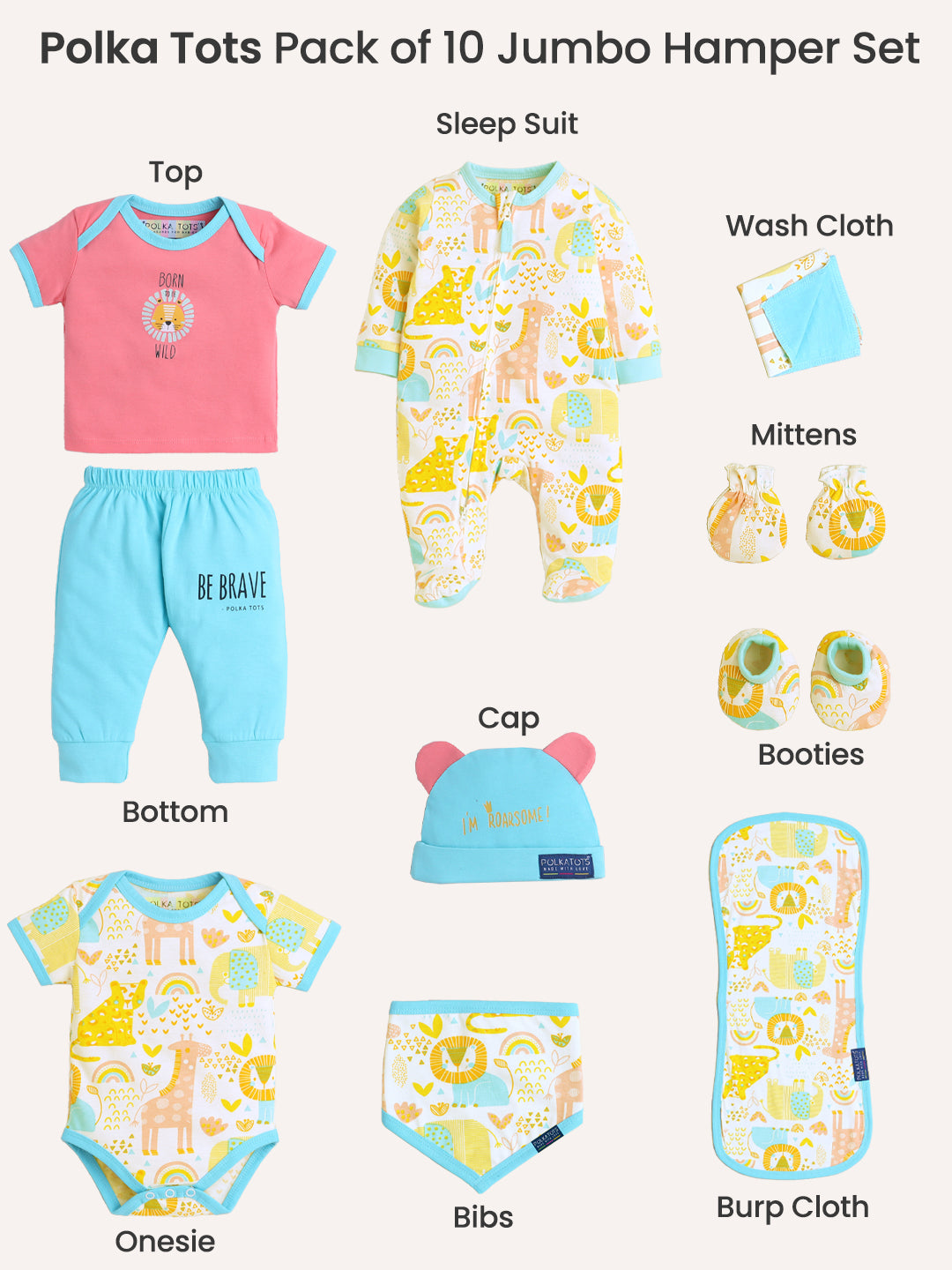 Polka Tots Pack of 10 Jungle Print Jumbo Newborn Gift Hamper Set - Multicolor