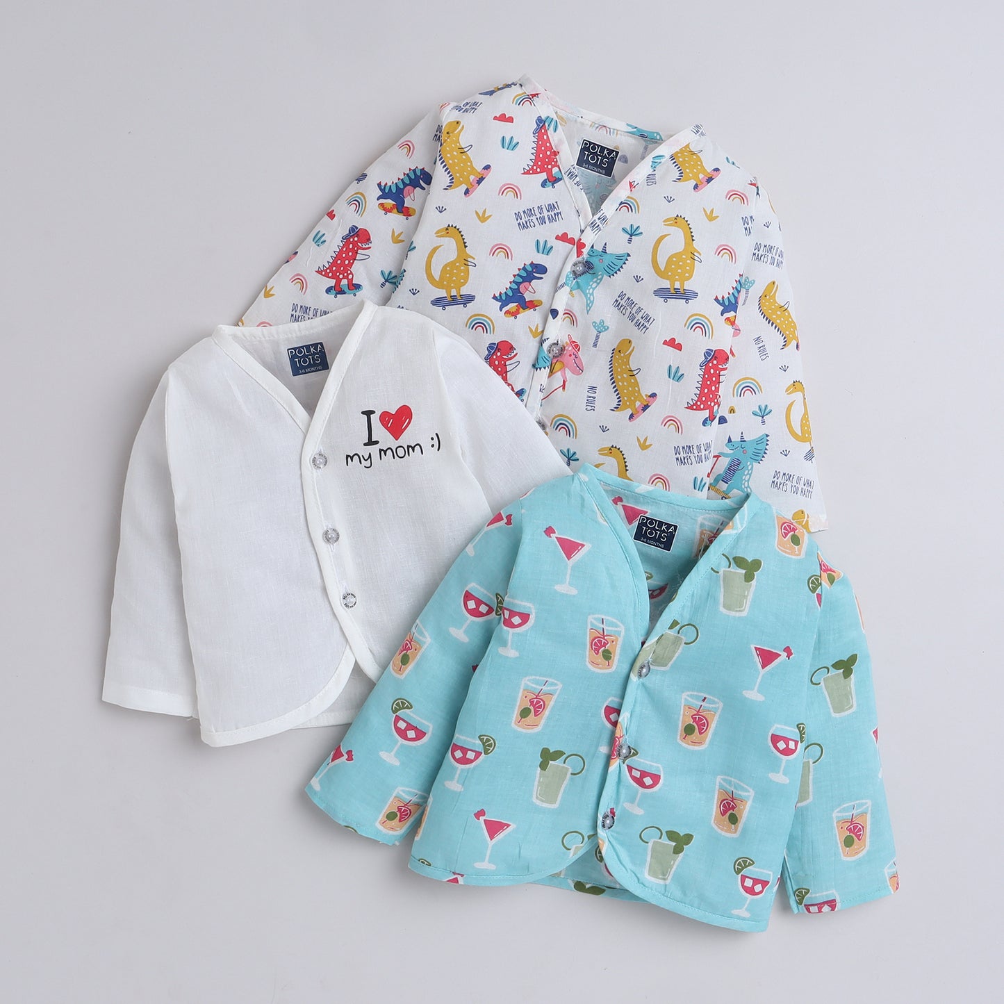 Polka Tots Soft Cotton Pack of 3 Full Sleeves Baby Jhablas