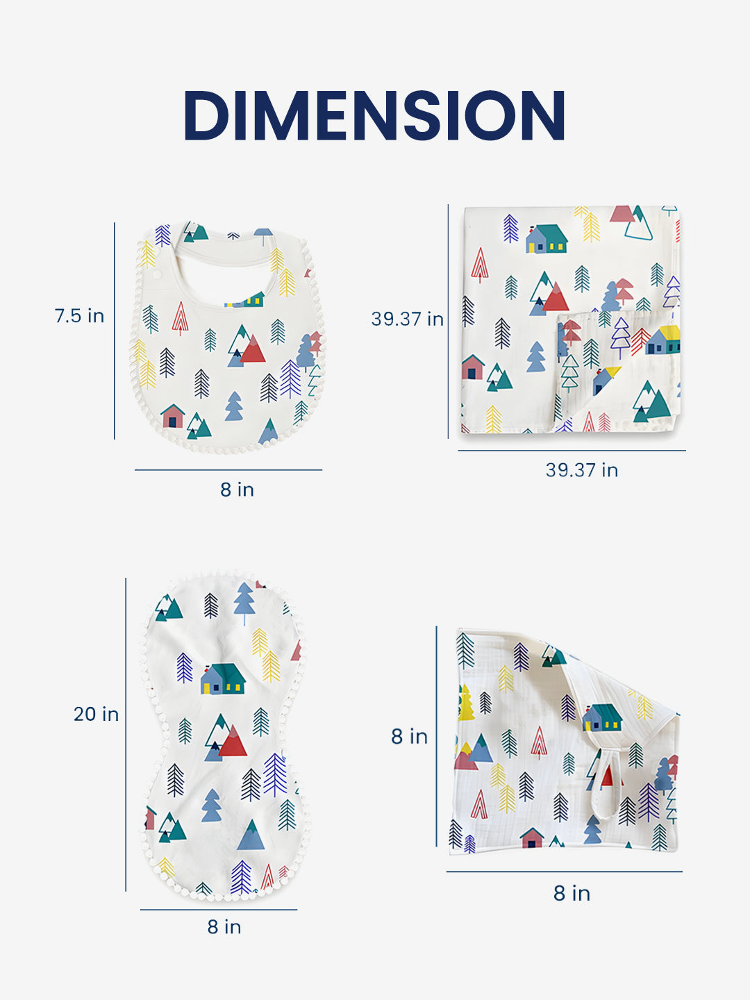 - Complete 5-Piece Set: Includes bib, swaddle, burp cloth, and 2 wash cloths for all daily needs.