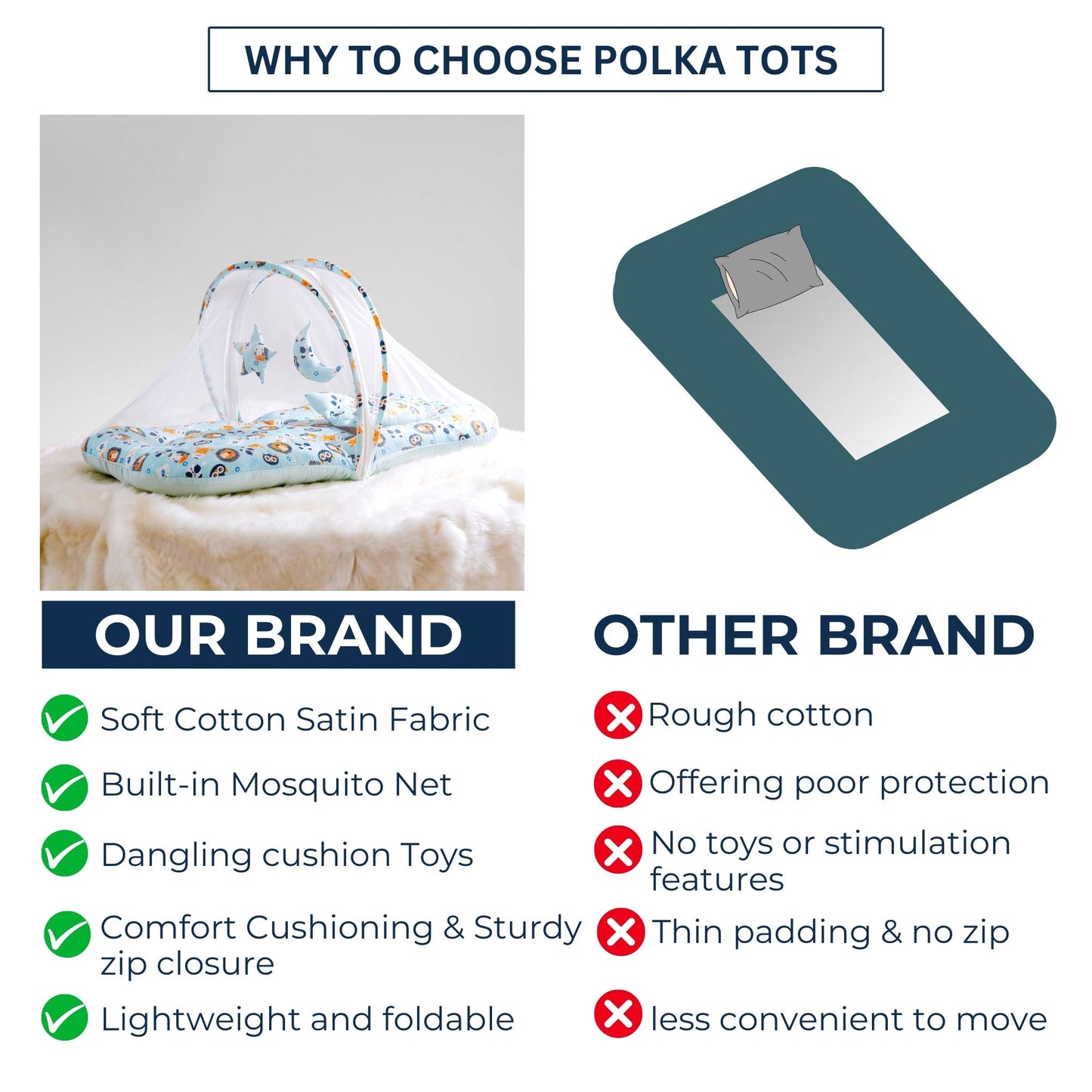 Soft Cotton Satin Fabric: Made from high-quality, breathable cotton satin, this fabric offers a smooth, gentle touch on your baby’s delicate skin, ensuring maximum comfort throughout sleep.