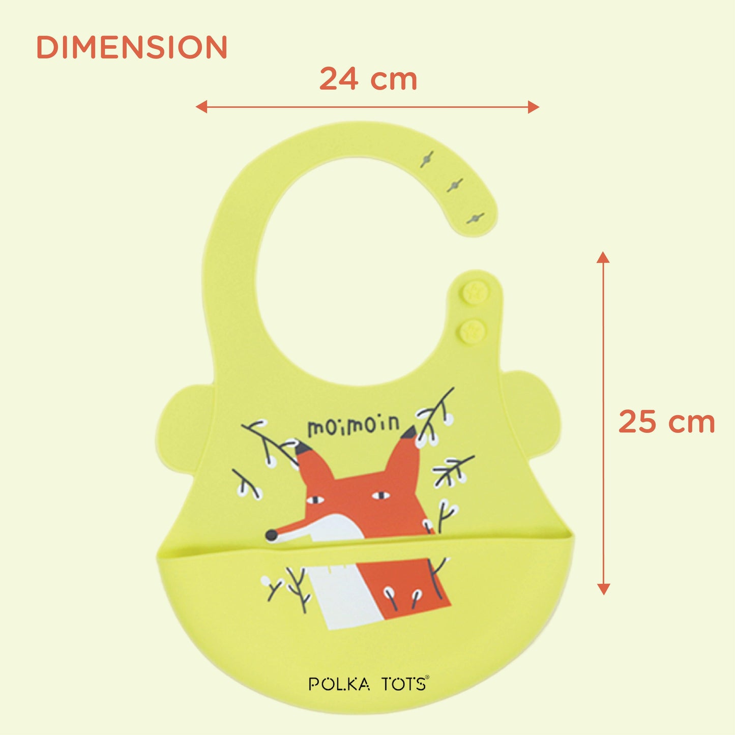 Polka Tots Waterproof Silicone Bibs with Pocket and Adjustable Snaps (Red Fox)